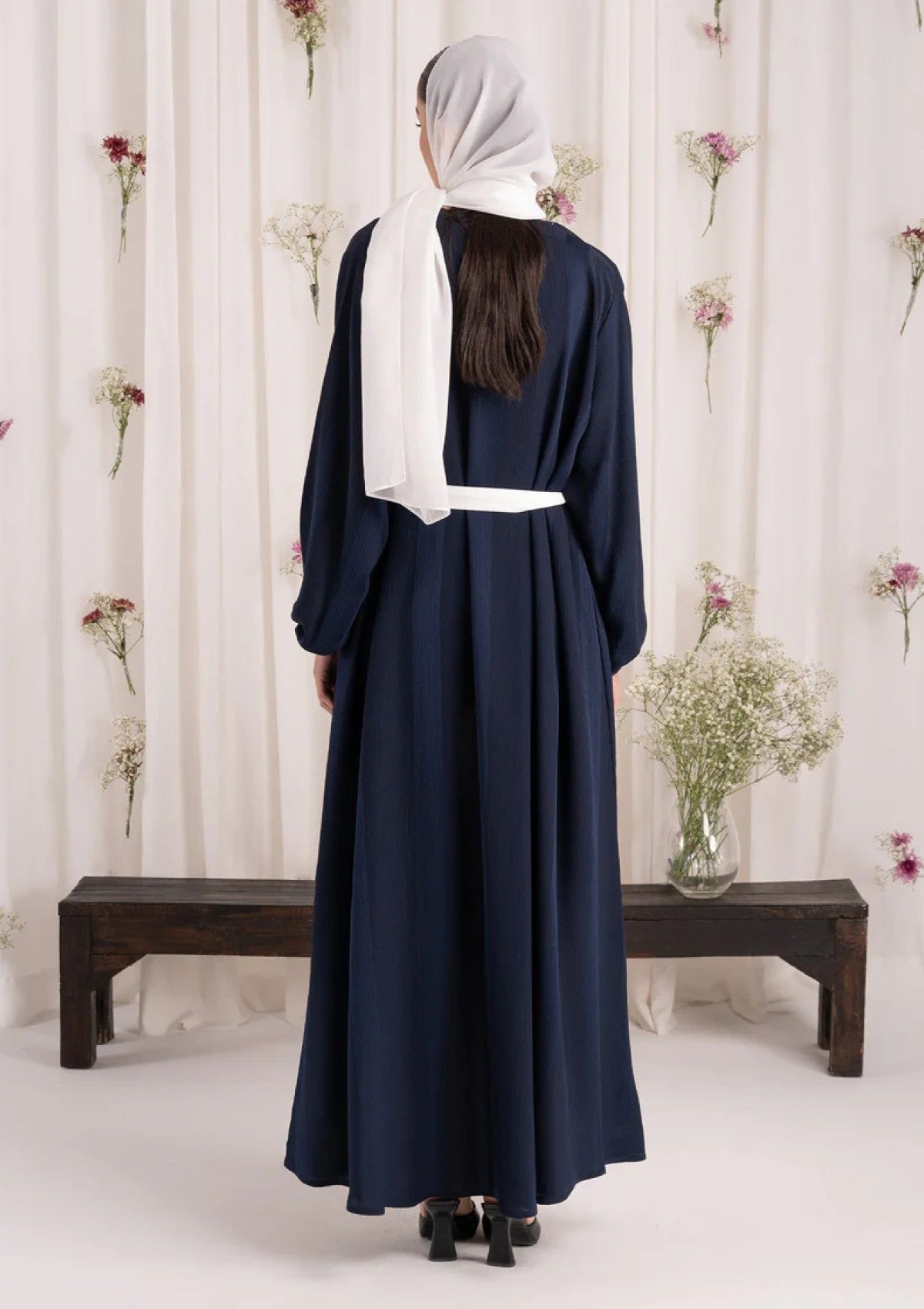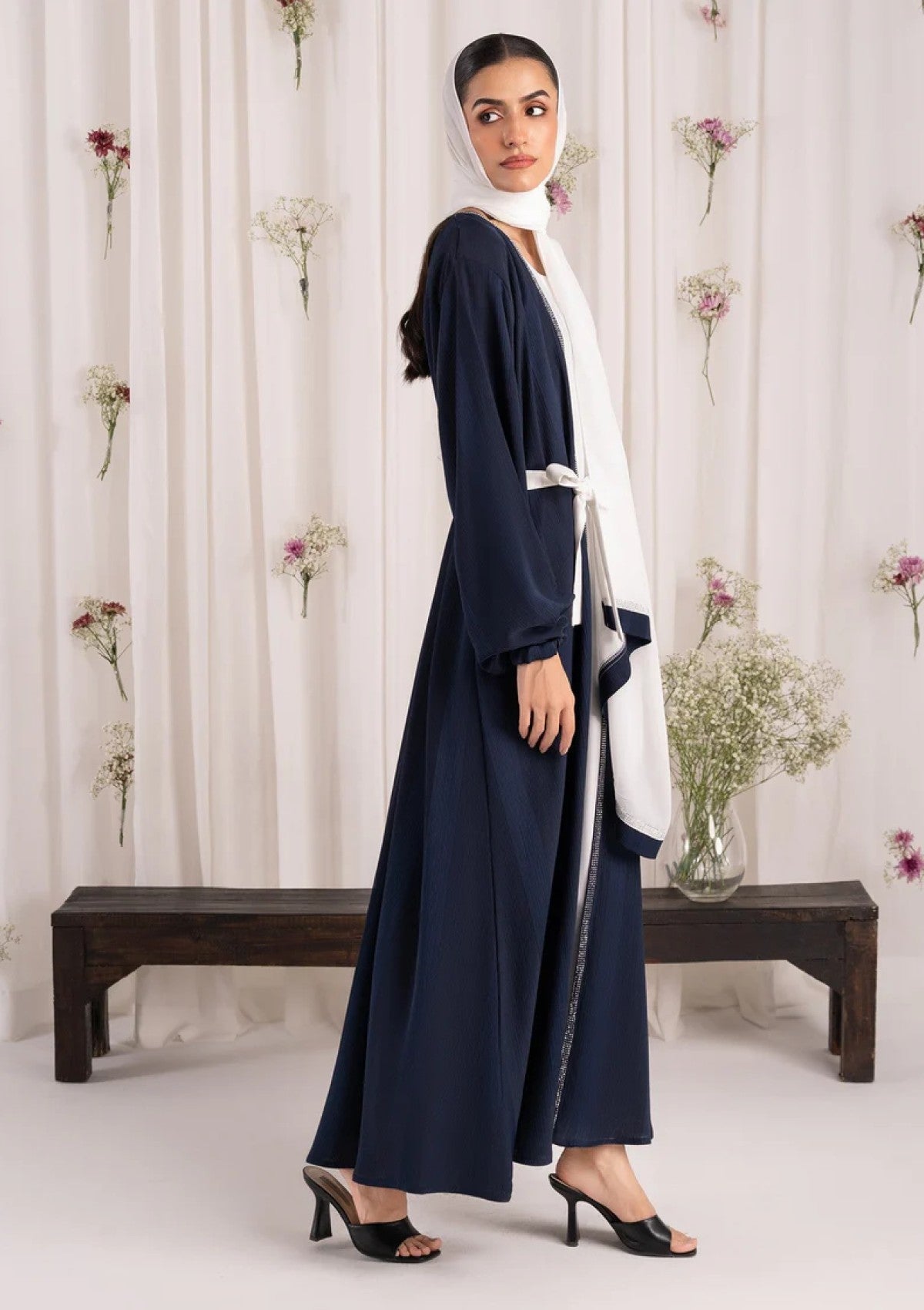 • Embrace sophistication with our navy blue print Zoom Nida abaya, featuring elegant stonework details and a graceful flow.