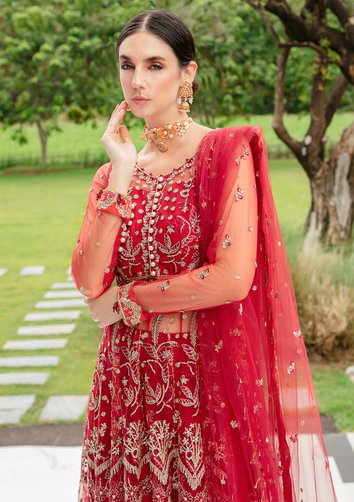 • Embroidered Front Right Bodice On Net 1 piece