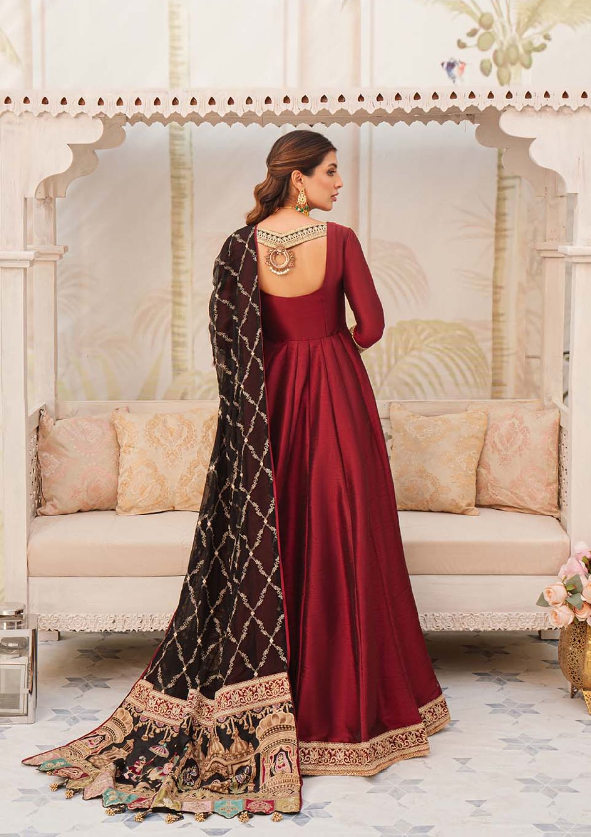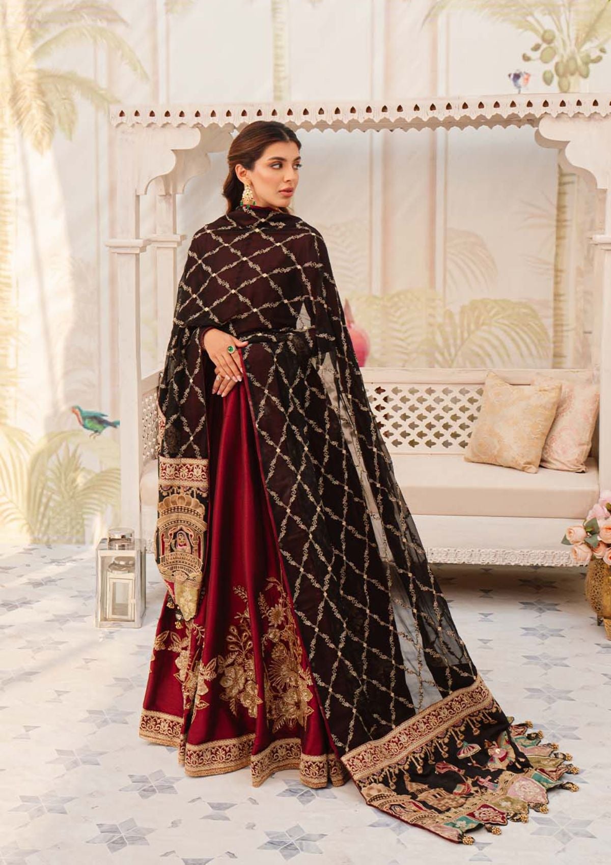 Step into the world of glamour with ‘ZANE’ a masterpiece of finesse and opulence, rendered in dreaming hue of garnet maroon.Adorned with intricate embroidered borders embellished with sparking crystals, beads and shimmery tilla work floral motifs.A supremely ornate dupatta with heavily embroidered jaal with is a statement along with multi hued borders which finishes the design to perfection. A gorgeously detailed pallu with intricately embroidered Mughal miniature art and an array or of ornament motifs hand embellished with beads and sequins and sparkling stones.This timeless beauty is a classic that’s sure to turn heads.