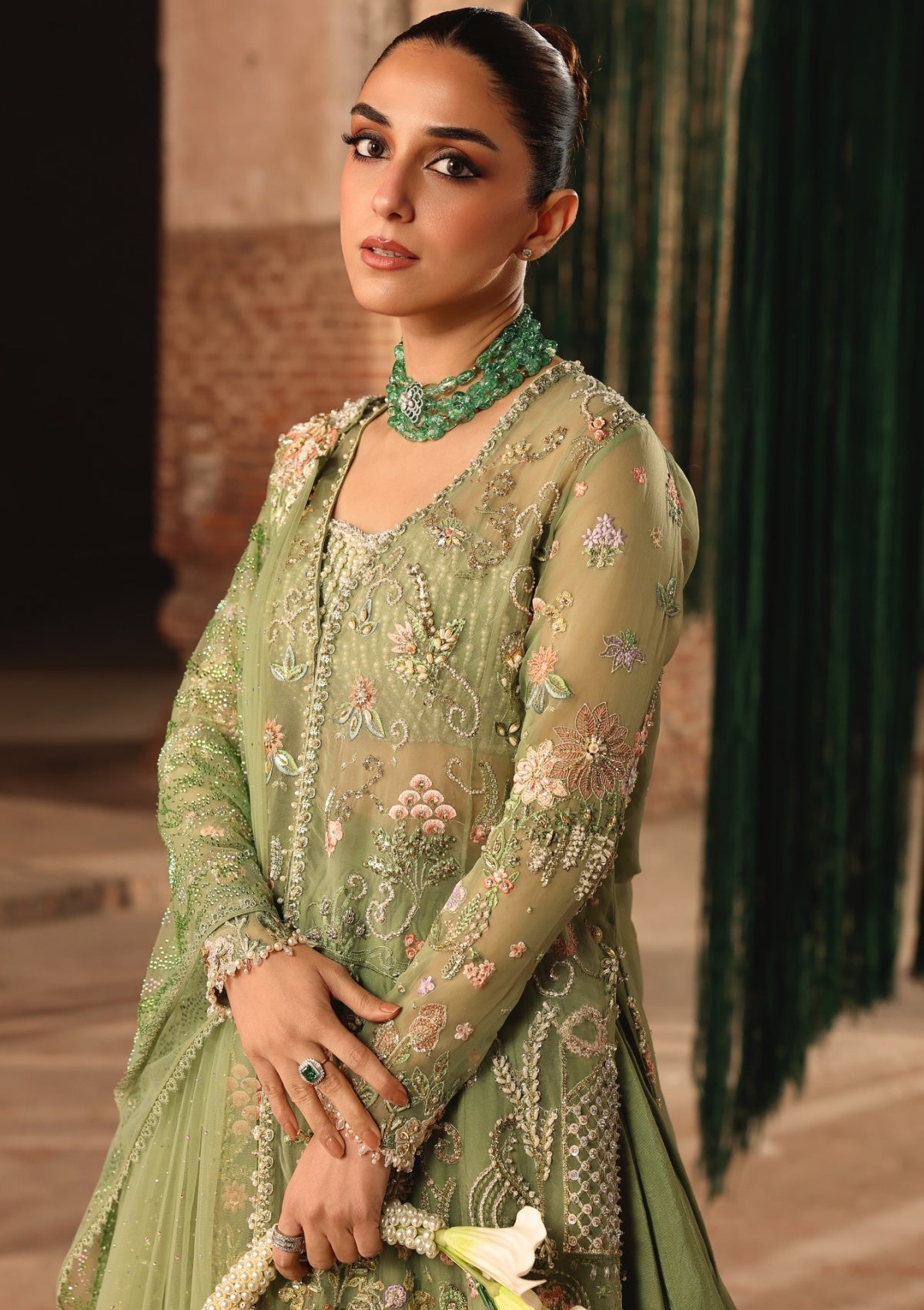 • 2.75M Crystal-Encrusted Dupatta On Poly Net.