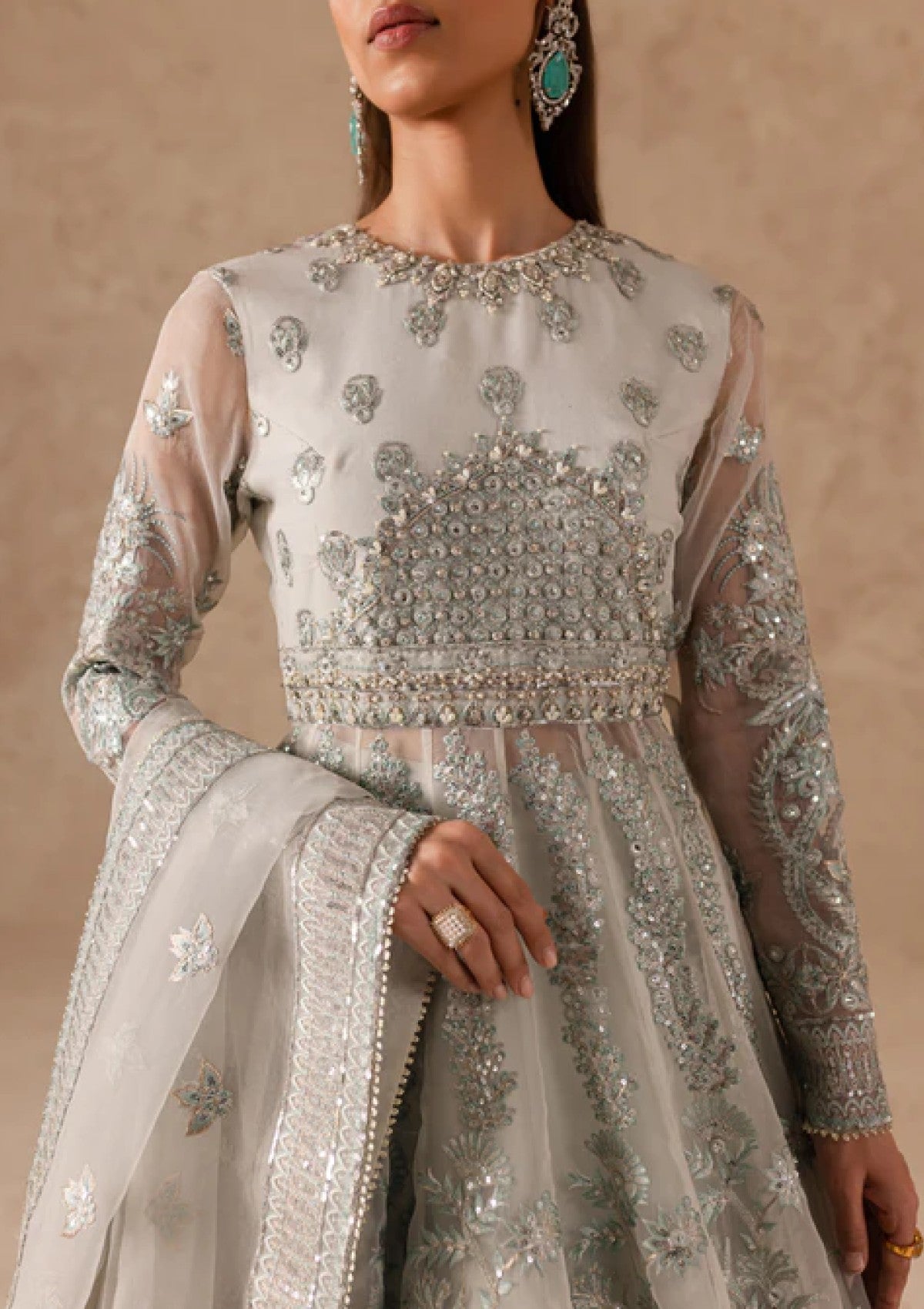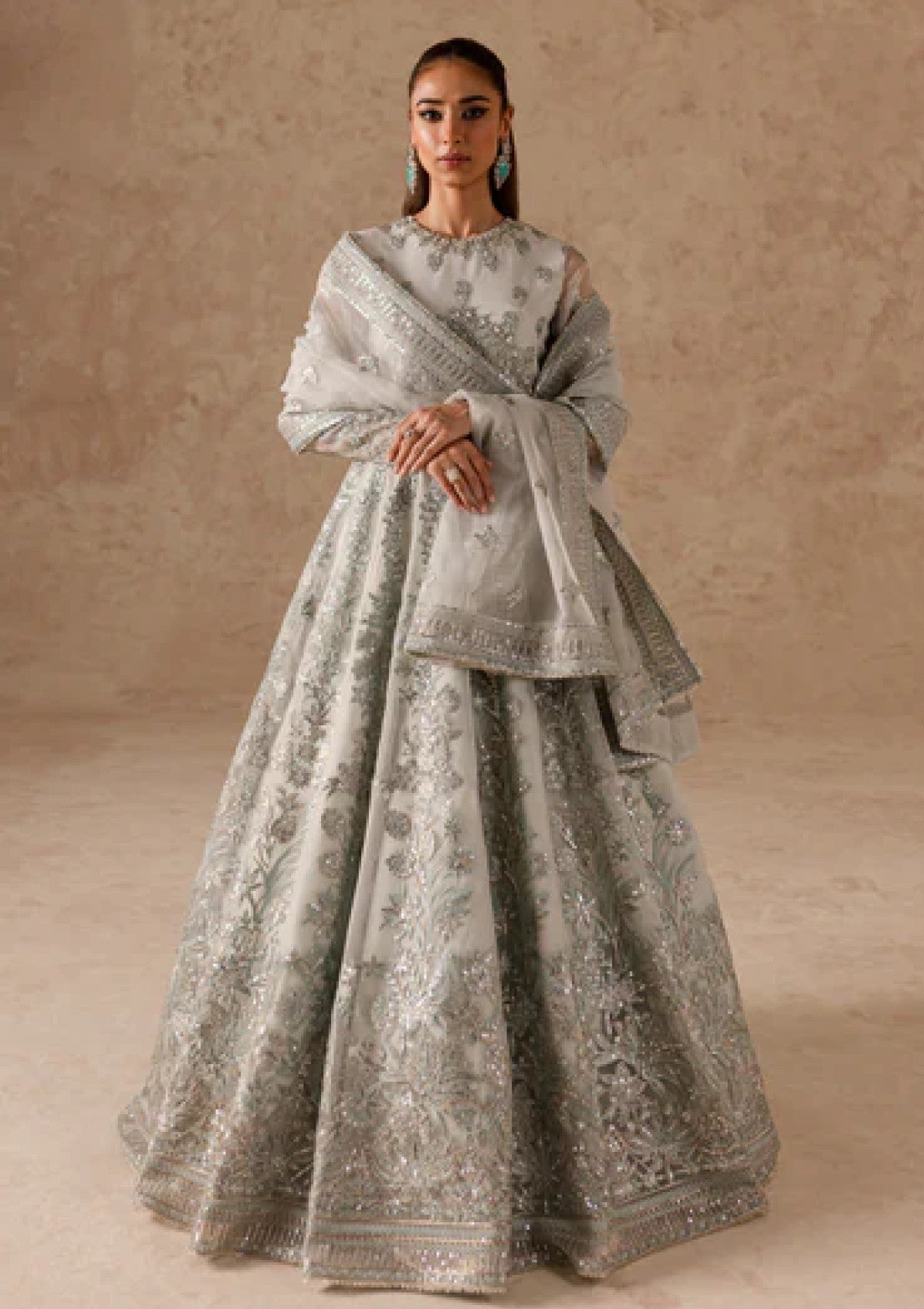 Step into the world of elegance with this stunning hand-embellished formal dress, adorned with intricate Dabka, Naqshi, Kashti, and delicate Bethki work. The ensemble is further enhanced by the shimmering beauty of Kanch Moti, Phool Sitara, and Drops, while Pearls and Cutt Dana add a touch of timeless sophistication.