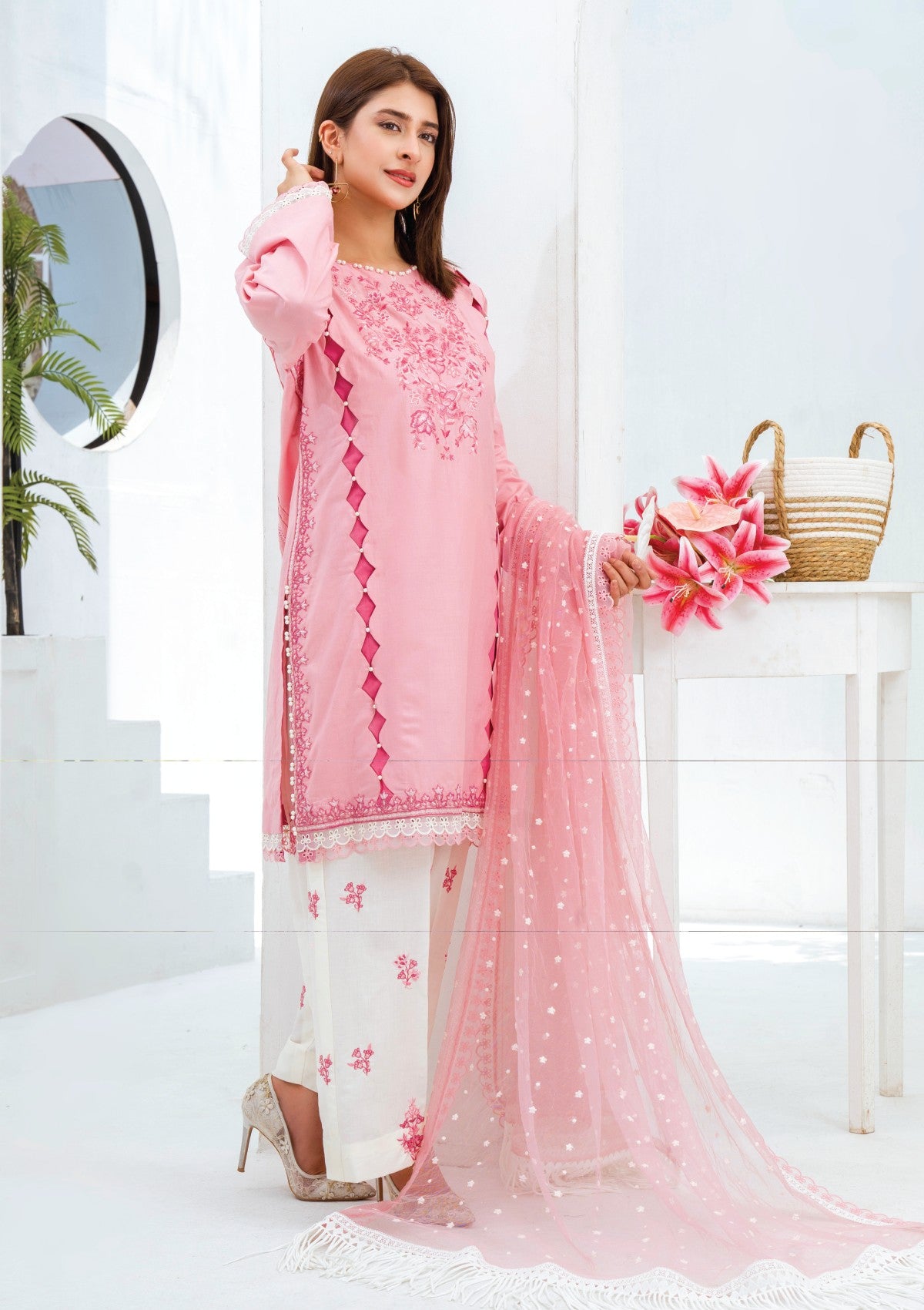 Lawn - Abeer Rasheed - Farzana - Luxury 25 - AR#11 - Pastel Pink