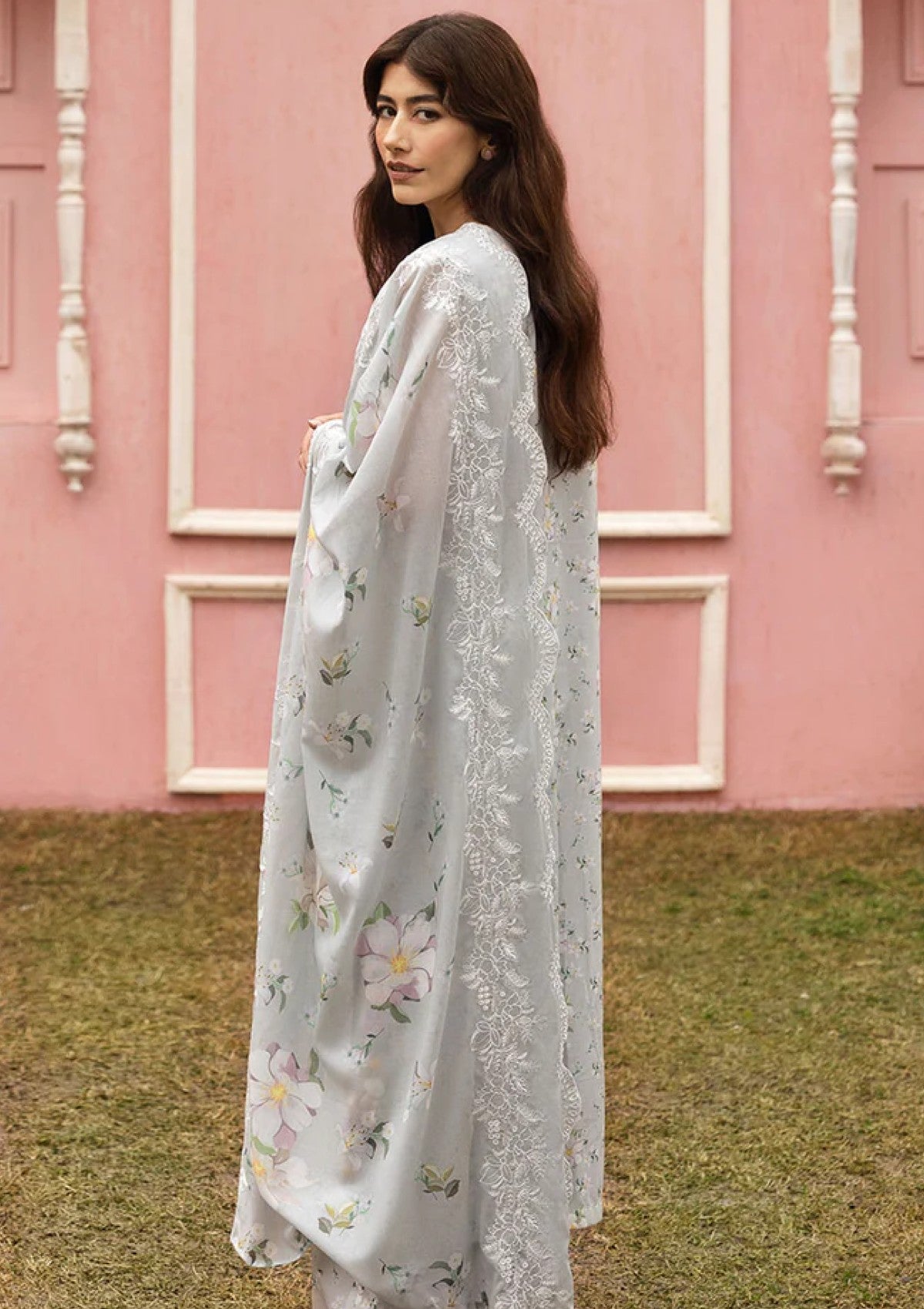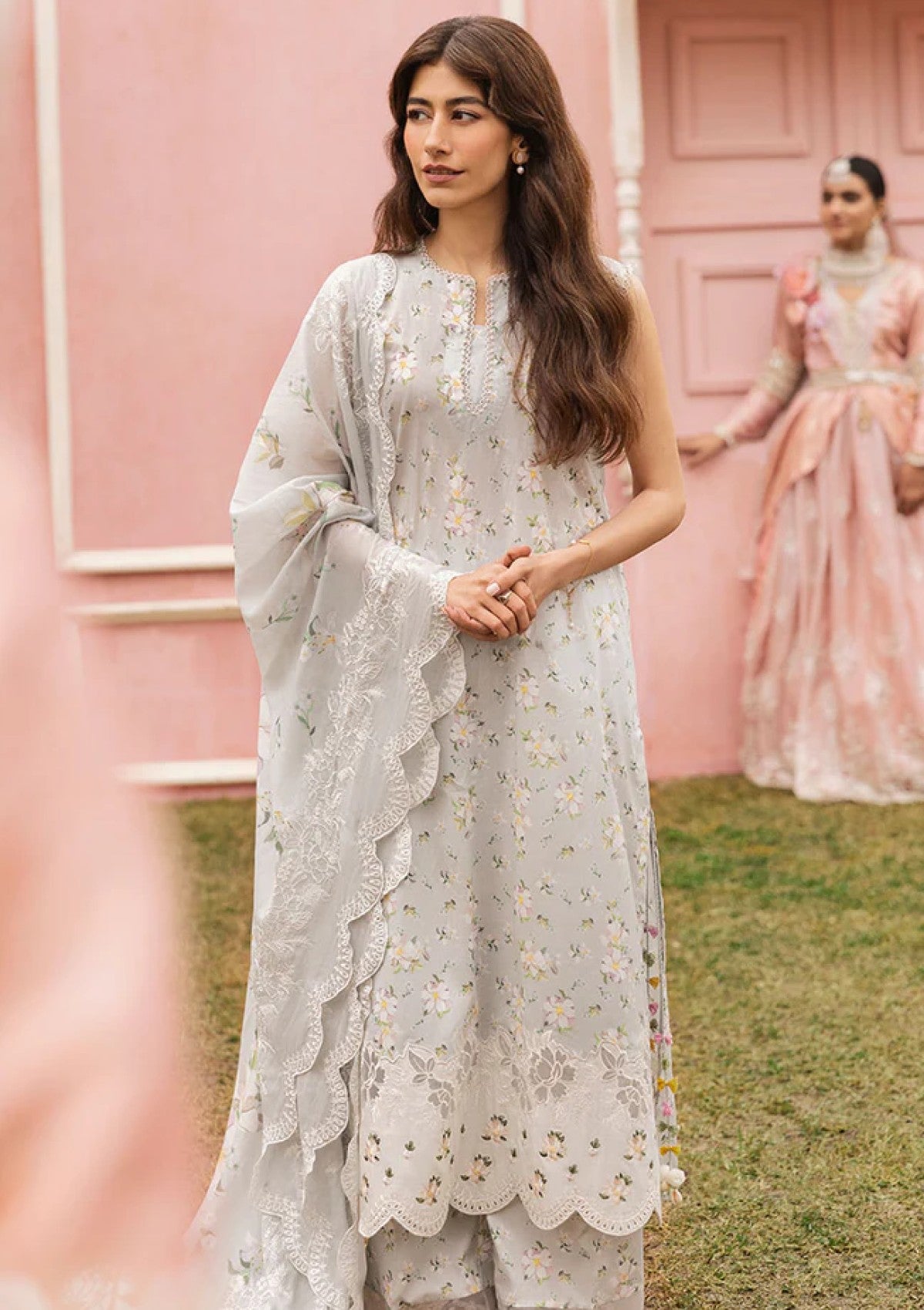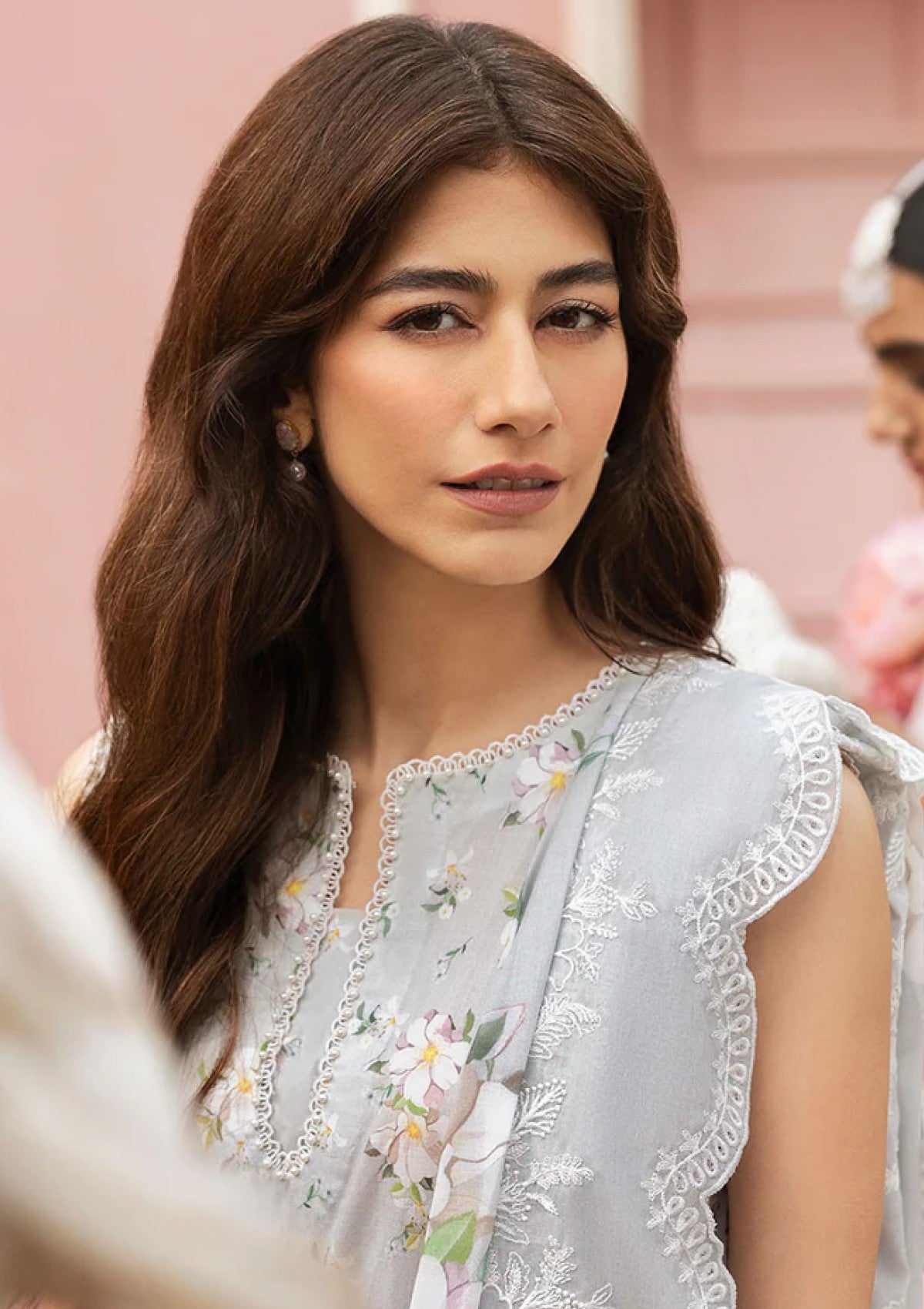 Introducing the GRAY FROST-3PC Printed Lawn Suit. Made from high-quality lawn fabric, this suit features a beautifully printed shirt with a 40" embroidered applique border for the hem. The cambric printed trouser is accented with a 60" embroidered patti, and the lawn dupatta is both printed and embroidered, adding a touch of elegance to this ensemble.