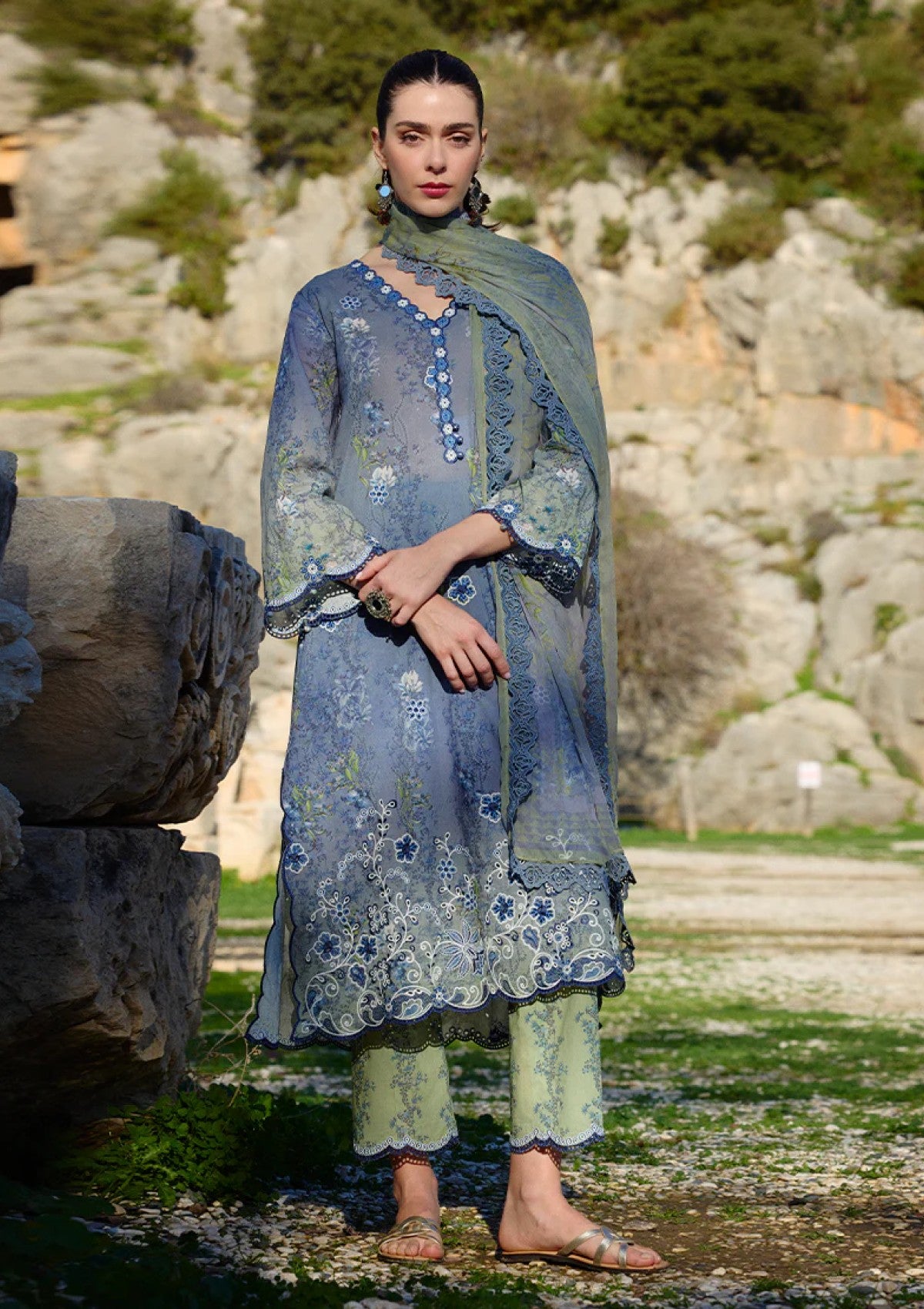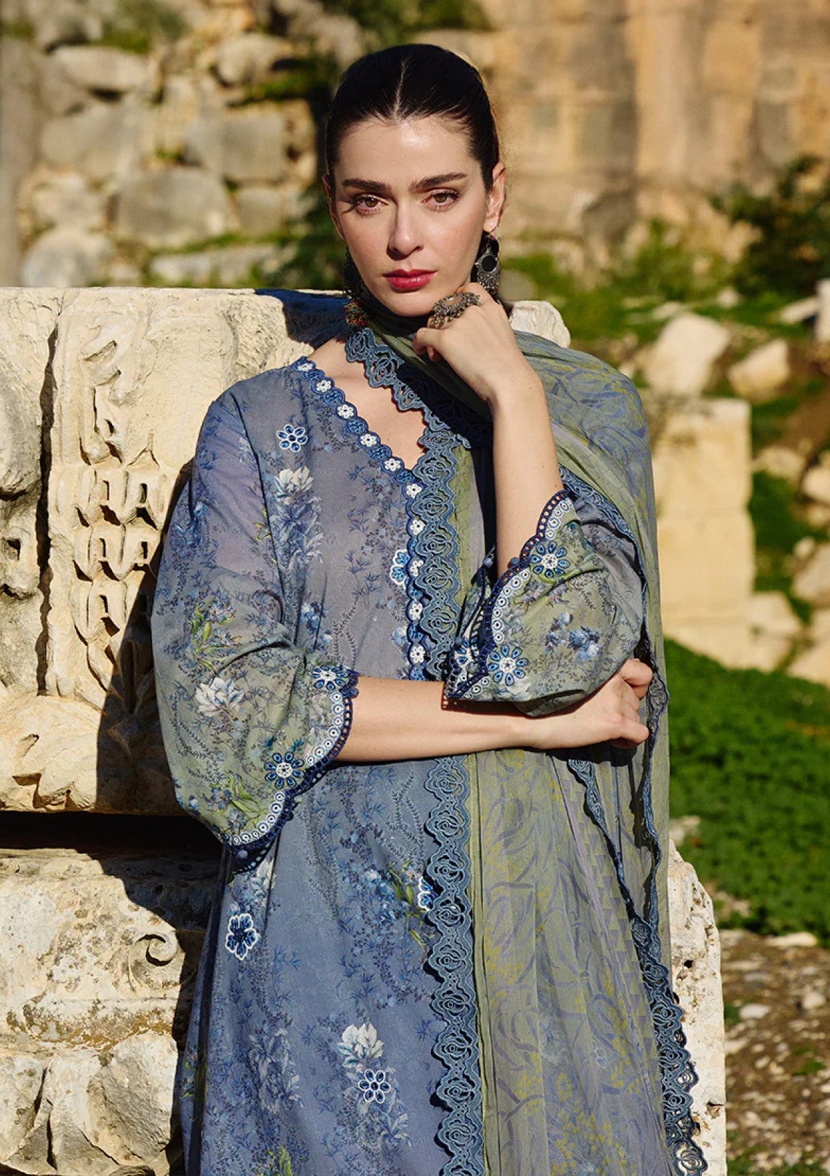 Efsun in Bluish Grey from our Spring Printkari '25 Collection. A printed cutwork embroidered cotton 3-piece outfit paired with digital printed chiffon dupatta.