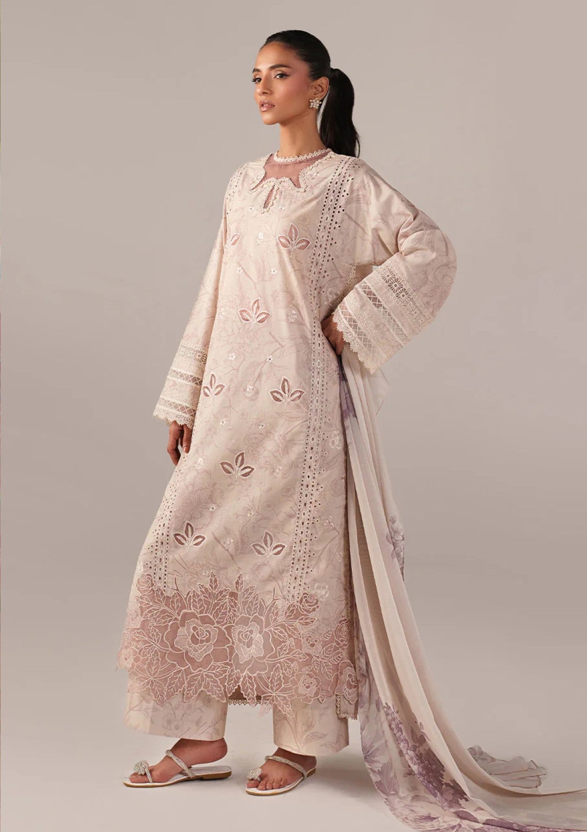 • Shirt Center Panel: Embroidered Printed Laser Cut Lawn