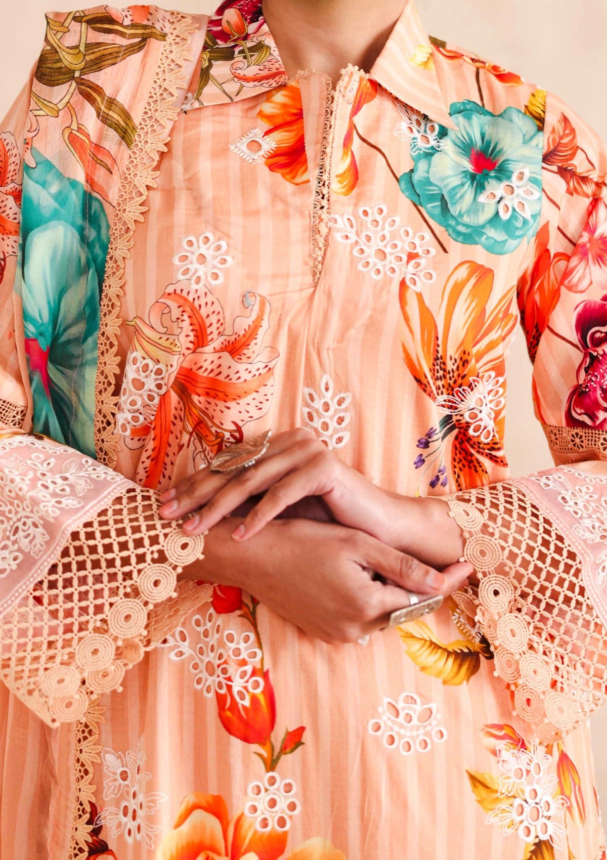 • Embroidered + Printed Lawn Back + Sleeves 2 Mtrs