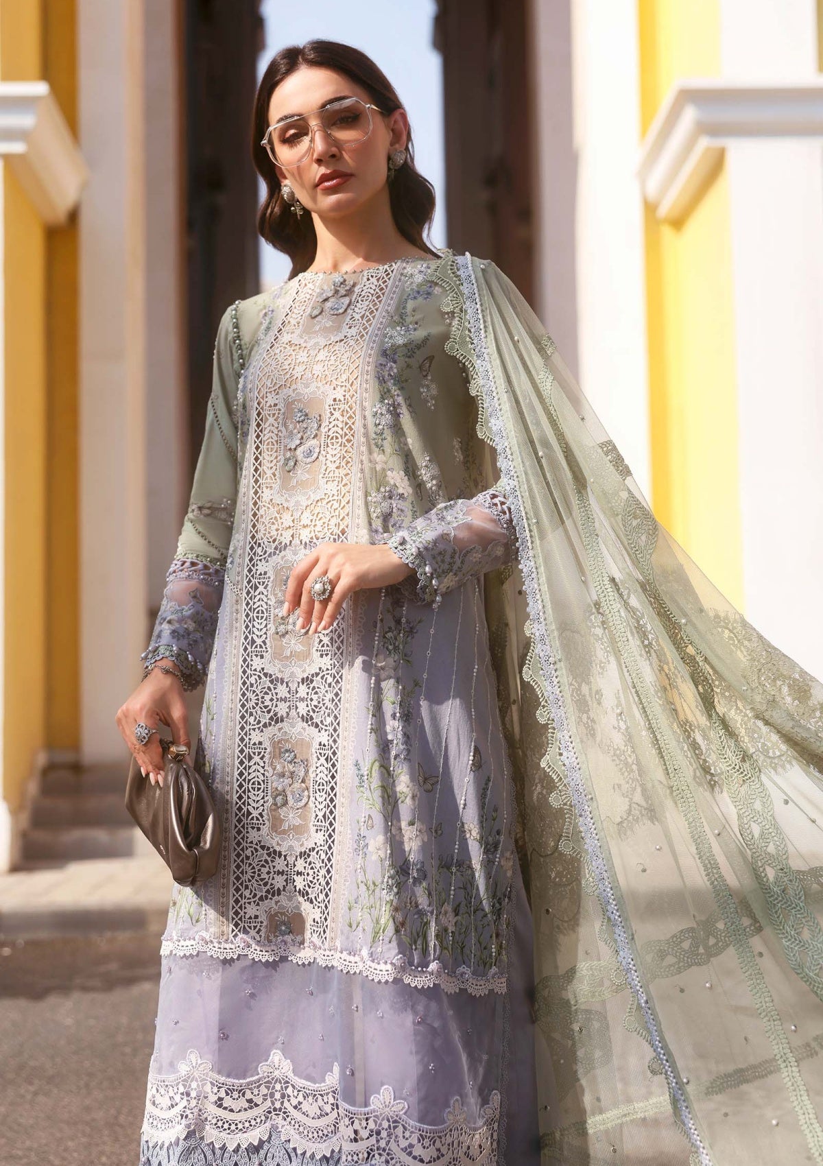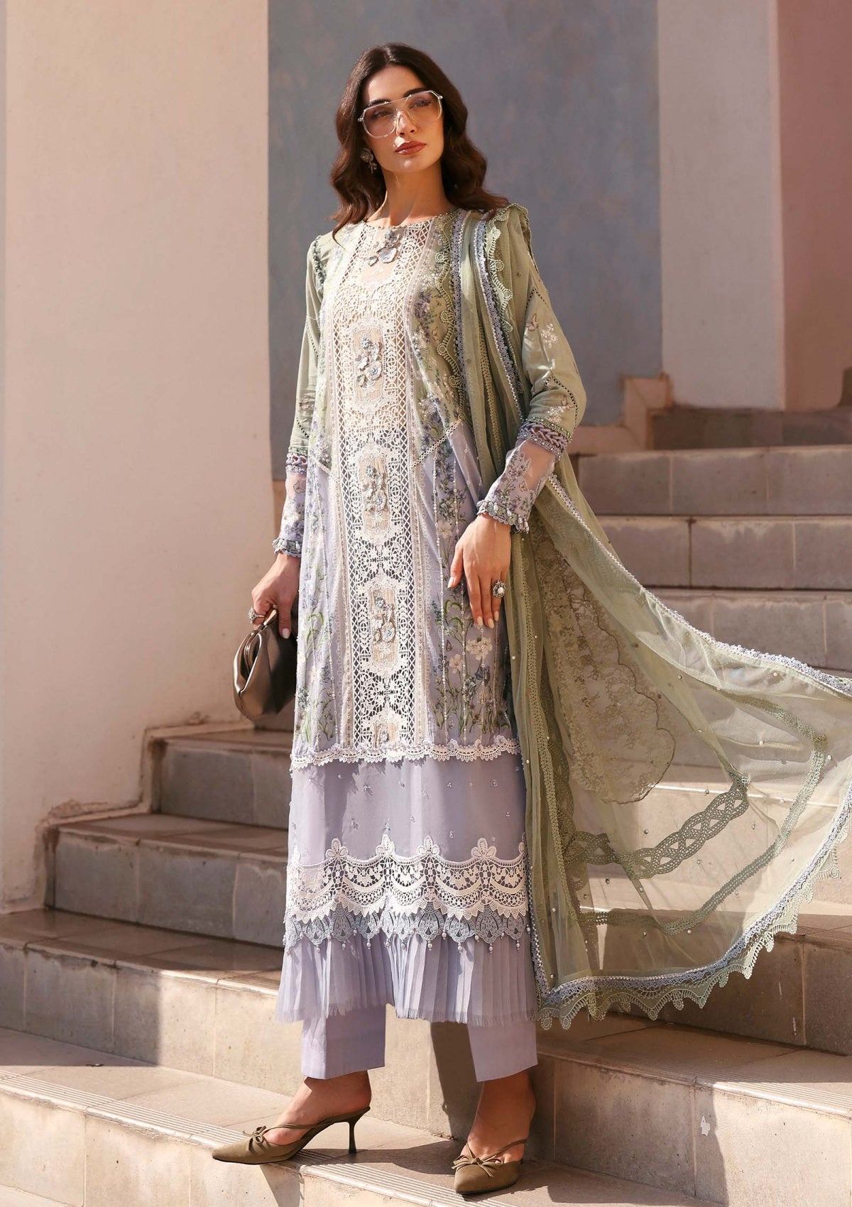 Prestitched Printed Embroidered Lawn Front With 3D Flowers & Stickon Pearls
