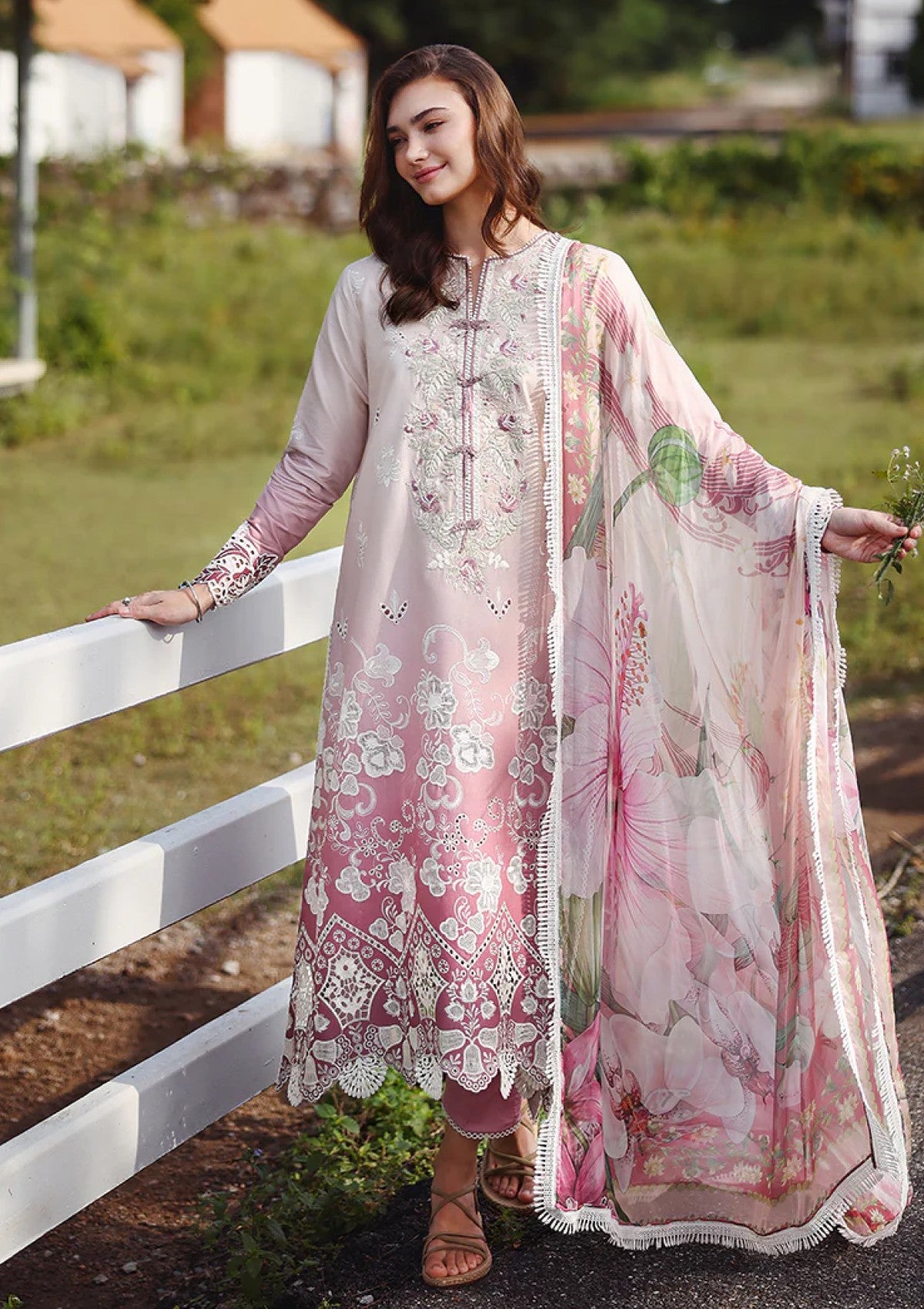 • Printed chikan embroidered lawn sleeves