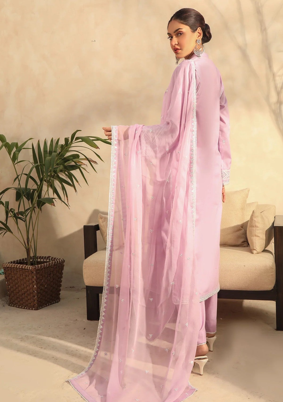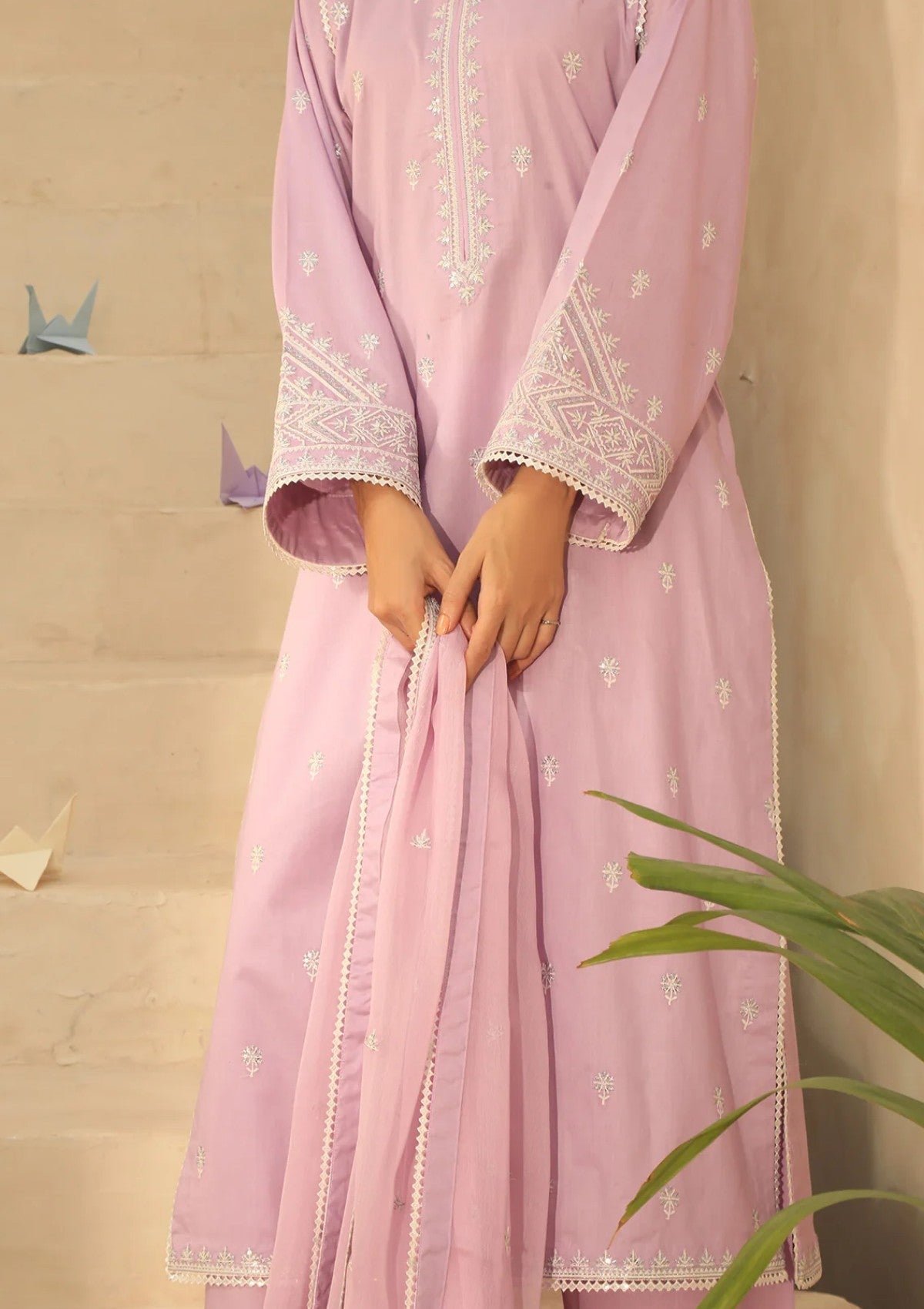 With a beautifully embroidered neckline, this 3-piece outfit is designed with a detailed lawn shirt front and double-sided borders. The embroidered lawn sleeves are accented with intricate bunches and a matching border, while the plain lawn back and trousers ensure a comfortable fit. The look is finished with an embroidered chiffon dupatta edged with lace, offering a graceful and timeless appeal.