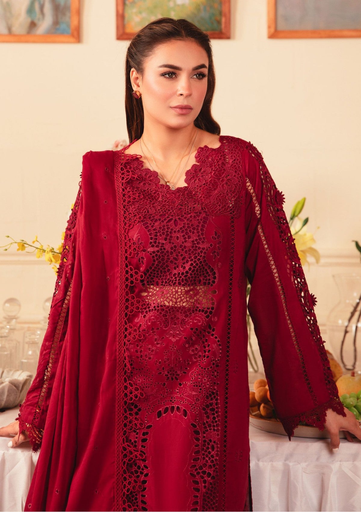 • Schiffli Bored Dupatta in Dyed Swiss Voile 2.5 Meters.