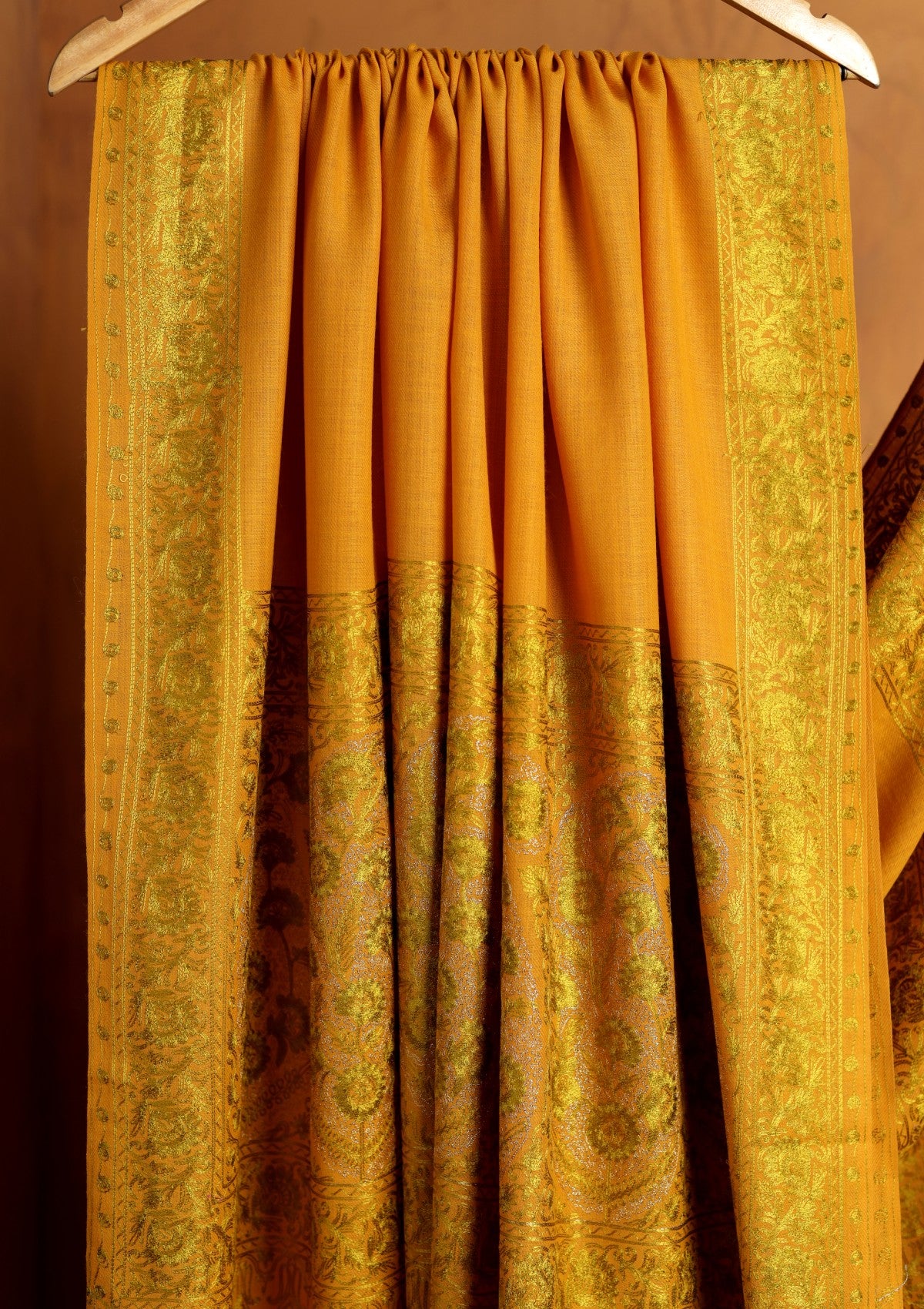 Pashmina Ari Work Jaaldar Shawl D#30 - Mustard