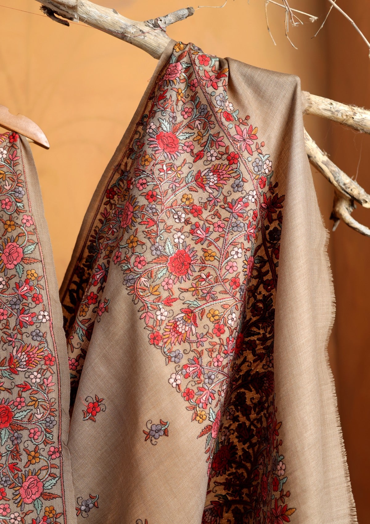 Pashmina Embroidered Border Shawl D#229 - L Brown