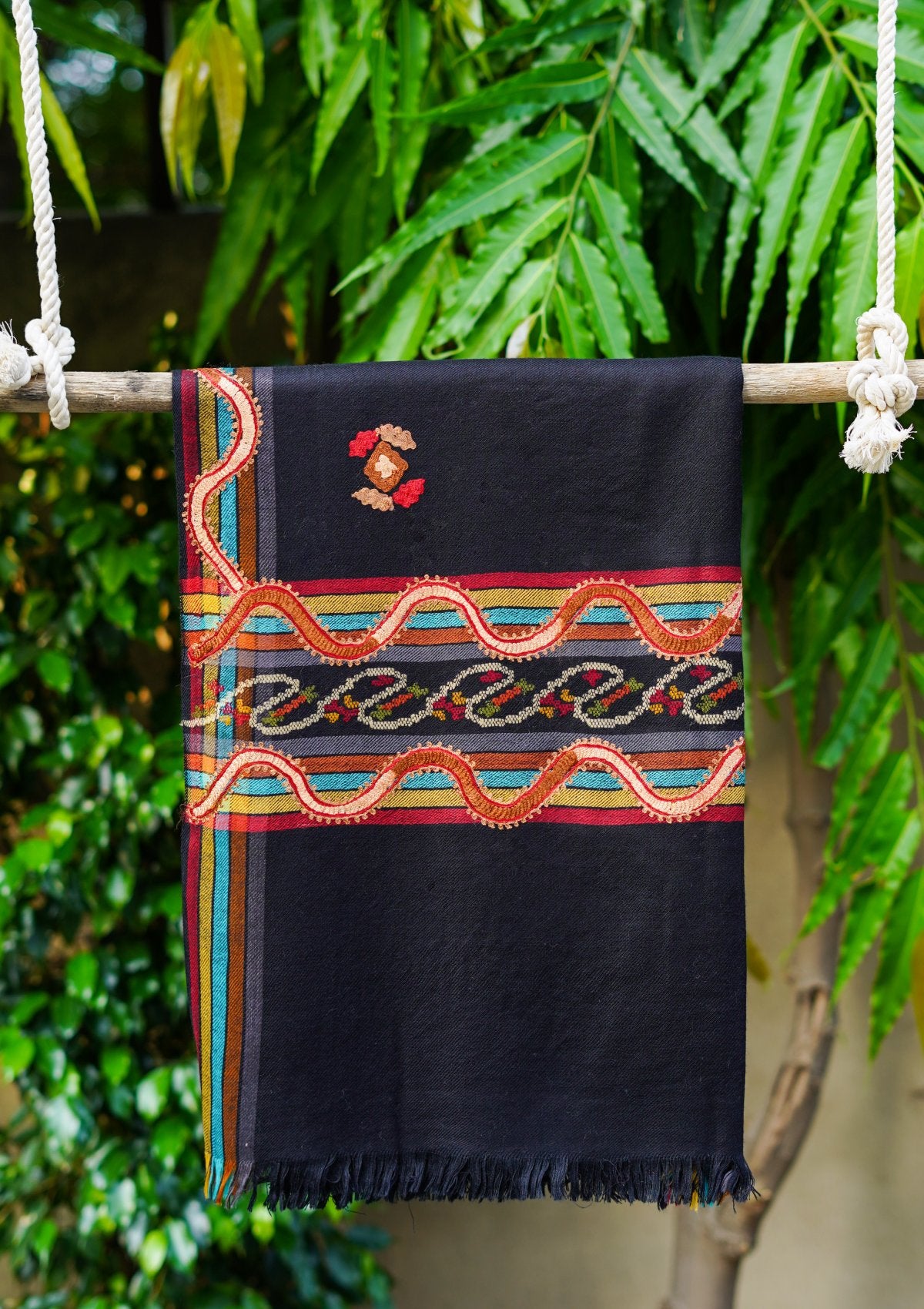 Pashmina Jamawar Shawl D -19 - Black