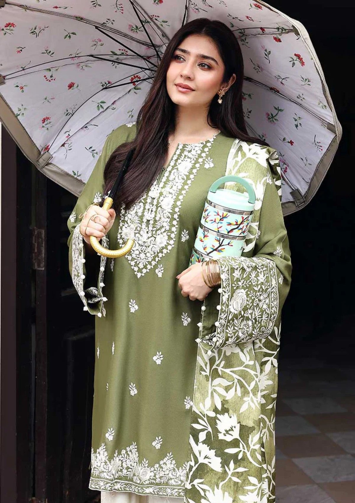 Moss Reverie – This olive embroidered linen shirt comes with a delicately embroidered neckline and hem that add just the right amount of detail, while the matching embroidered trousers keep the look polished. Paired with a printed shawl that brings a breath of nature, making it feel fresh, feminine, and and beautifully you.