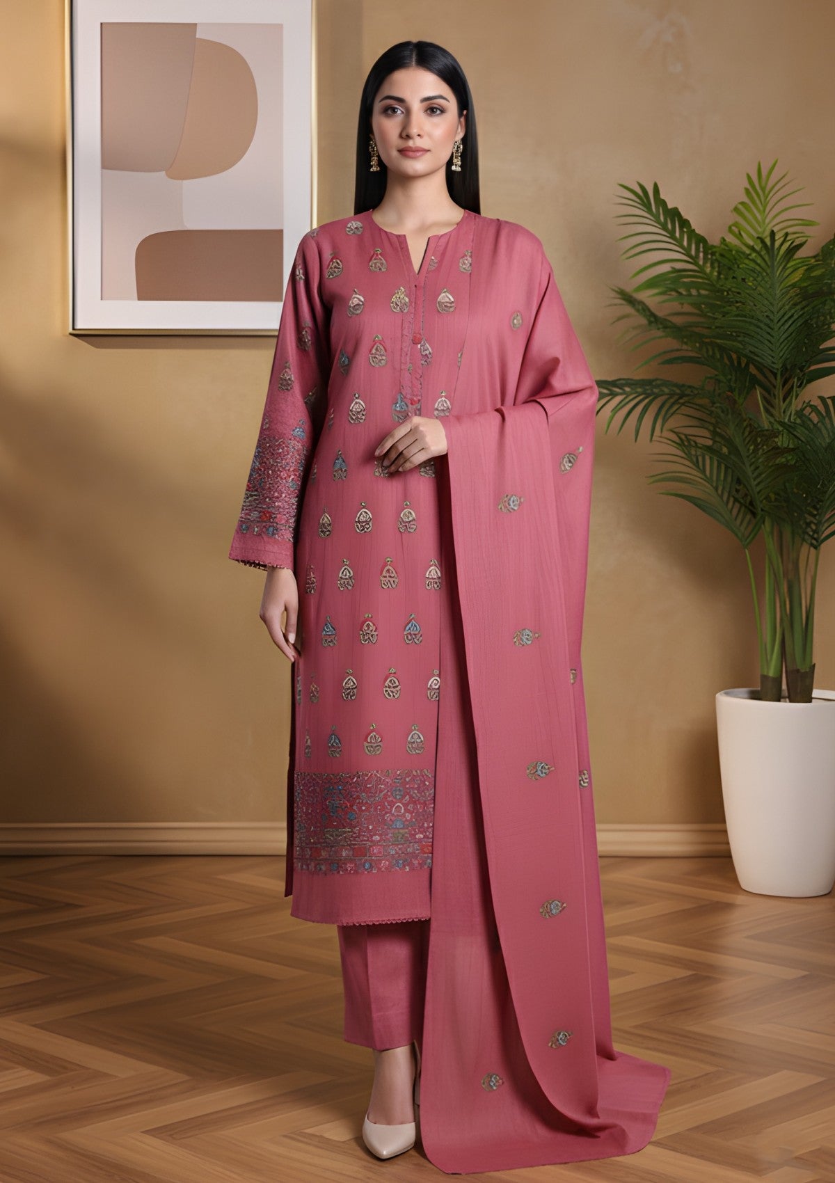 Winter - Riwaj - Pashmina Embroidered Suit - D#10 - T Pink