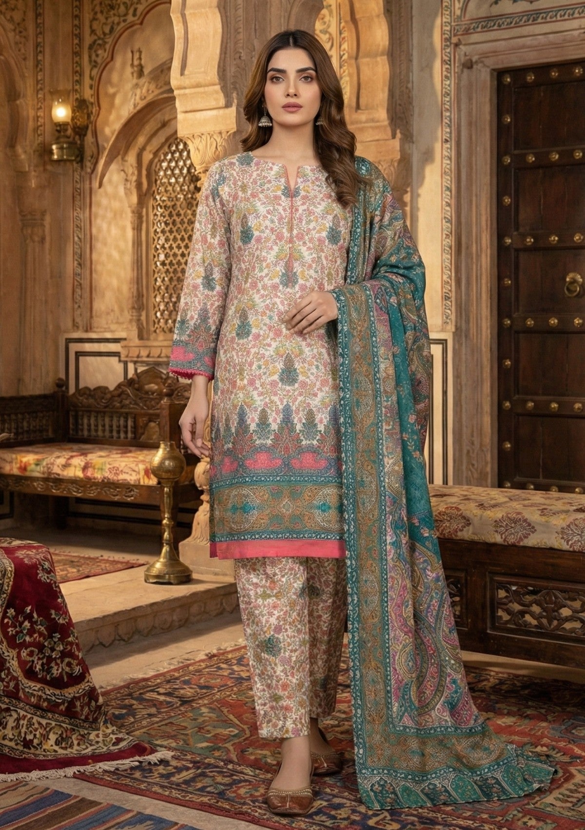 Winter - Riwaj - Printed Pashmina - 3 Pcs Suit - D#08 - Pink