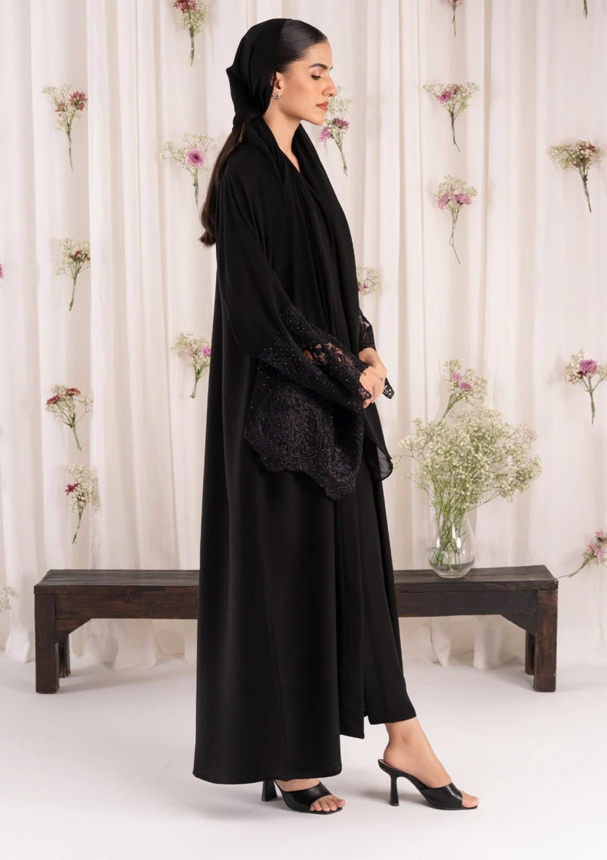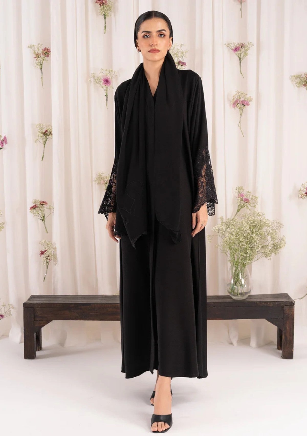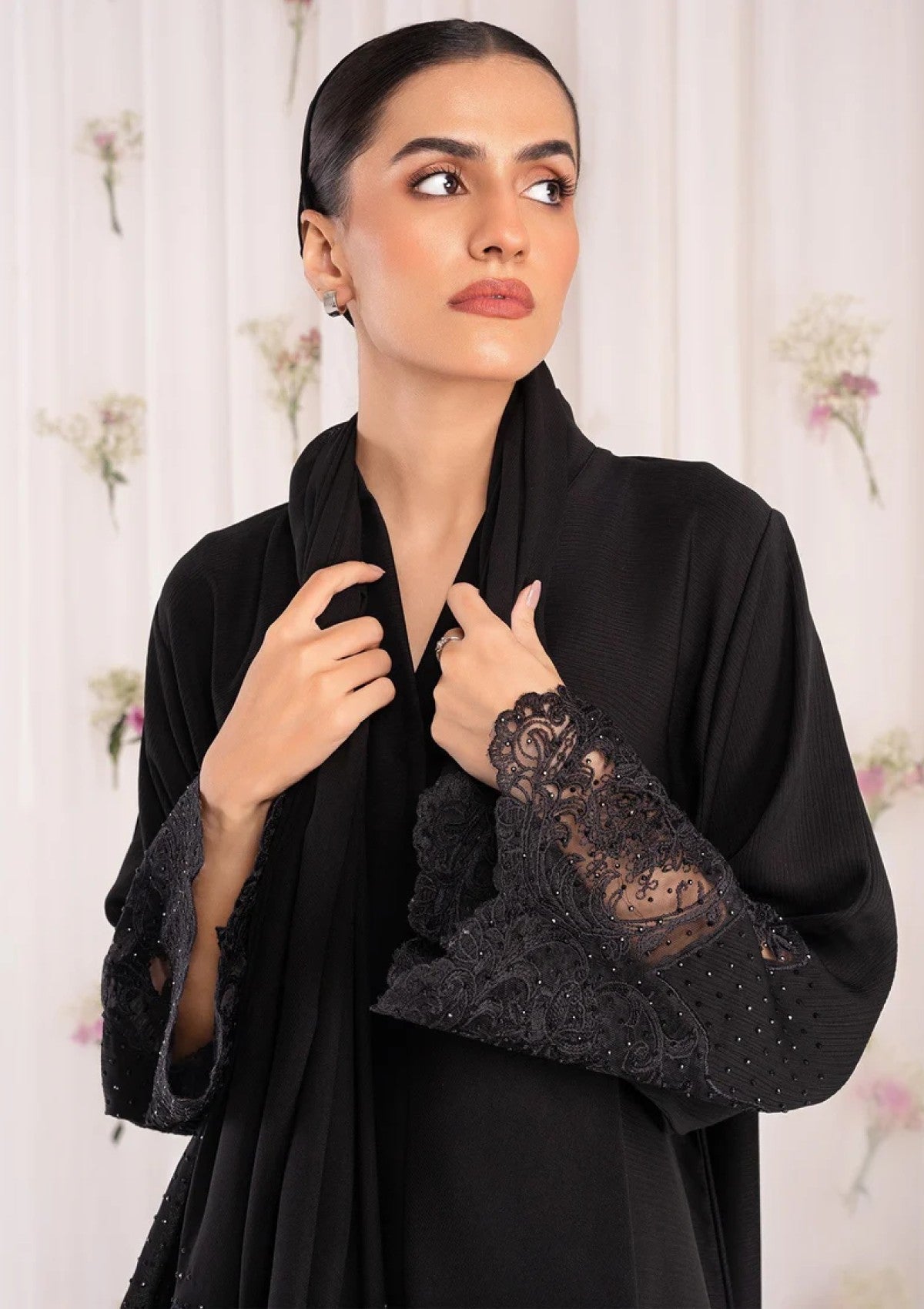 • Add a touch of glamour with our black Zoom Nida abaya. The unique stonework on the sleeves makes this piece truly stand out.