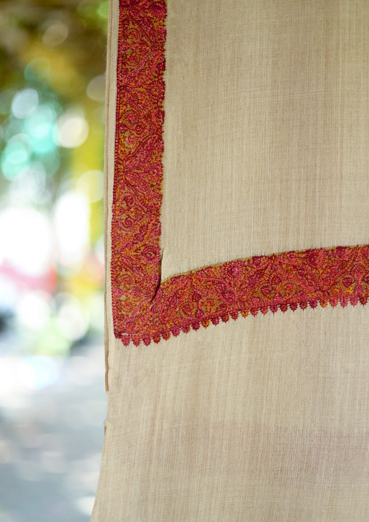 Embroidered Pashmina Shawl D - 03 - G Brown