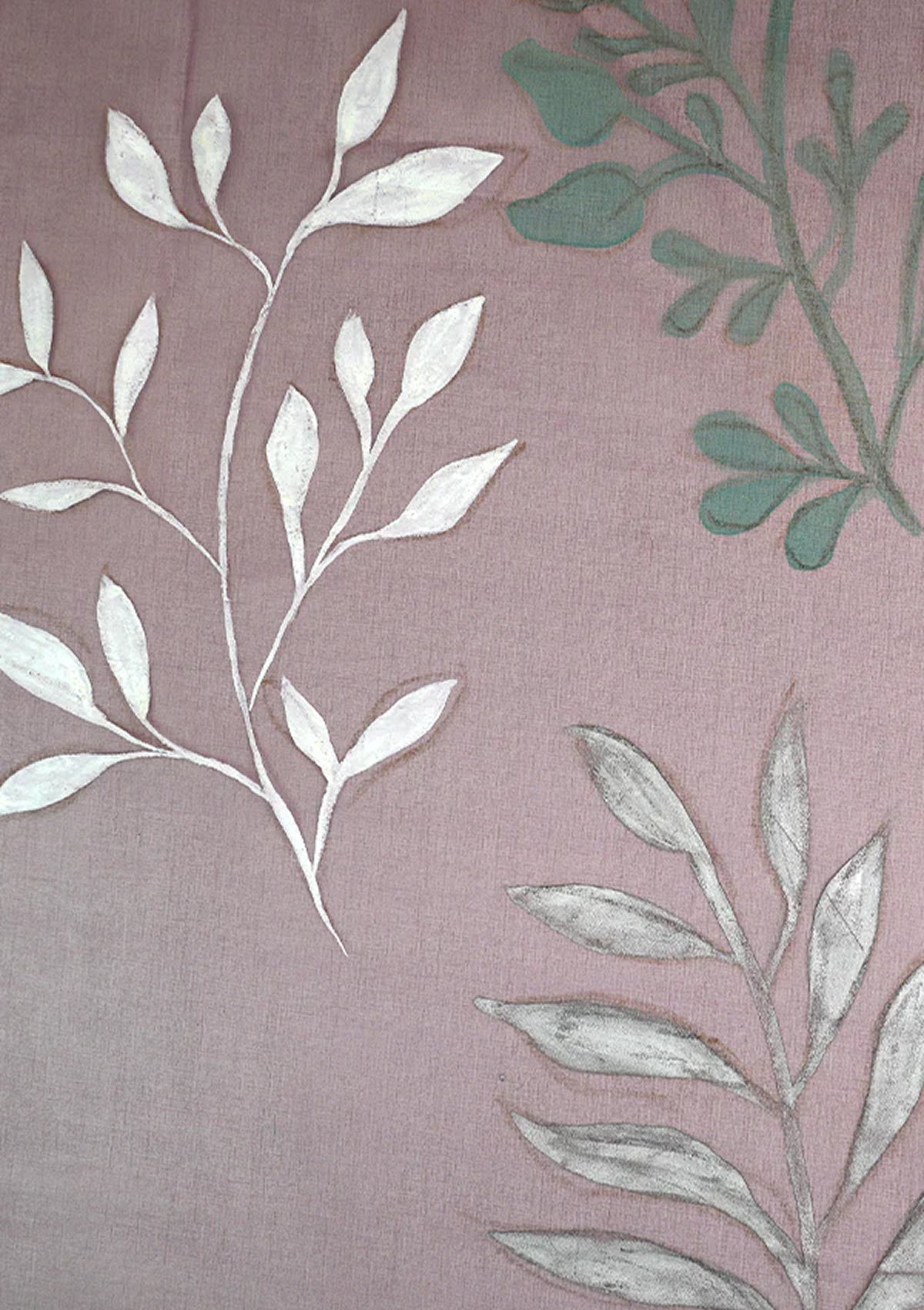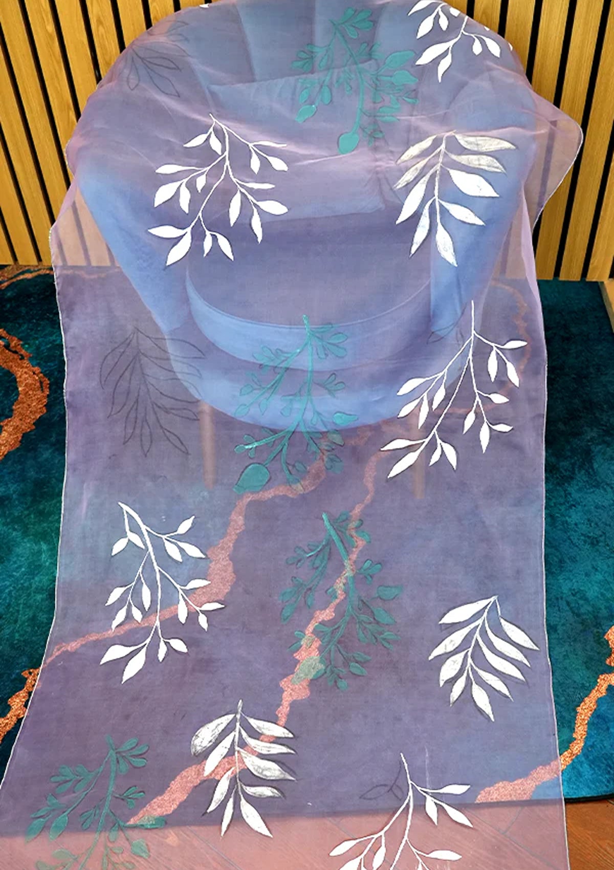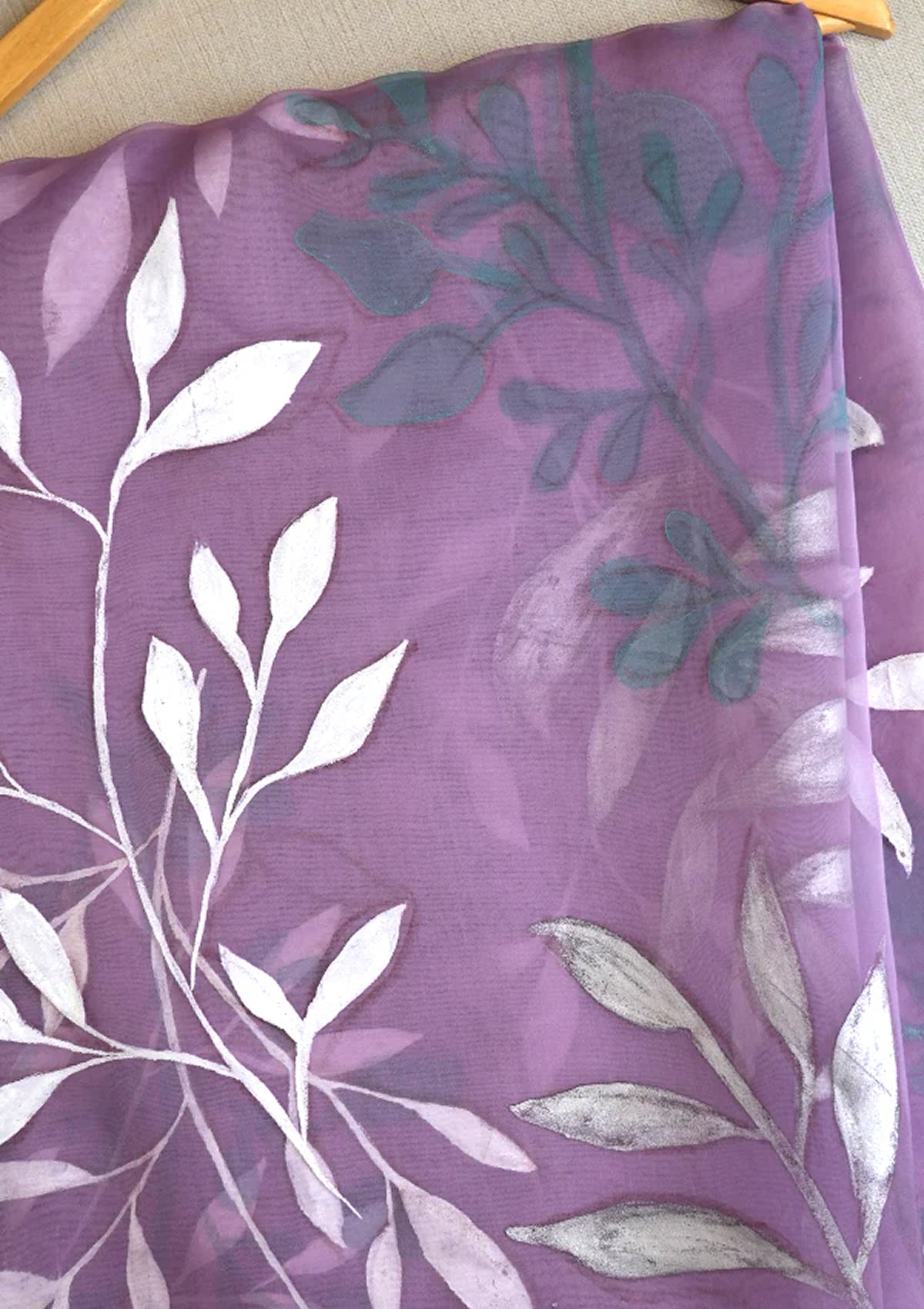 Enhance your style with our awesome Lilac Hand painted Designer Dupatta with the combination of white, silver and pastel green colors. Make a style statement with the leafy pattern and impress others around with the smooth texture of the dupatta.