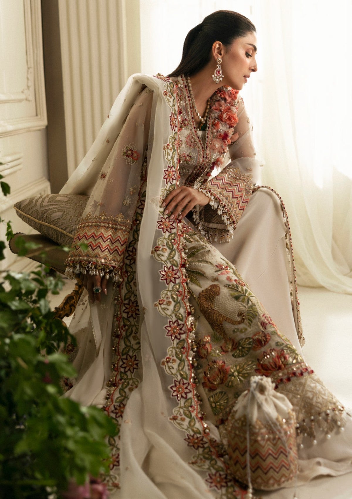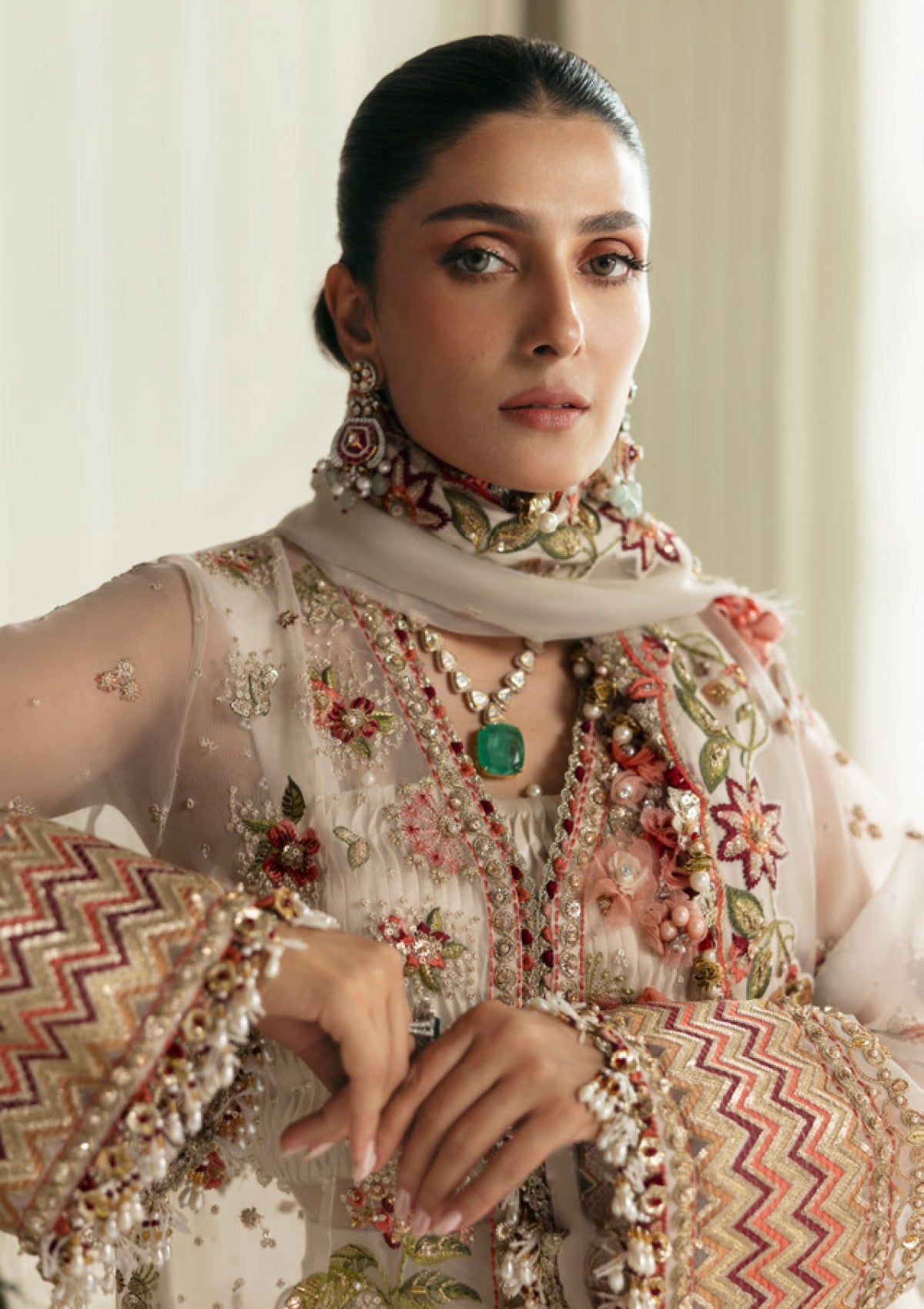 Supremely elegant, refined and captivating, 'Botanical Bliss' makes a statement at any festive occasion. Ayeza, a vision of loveliness, radiates poise and allure. Élan's artistry transcends time, weaving tradition and modernity into an eternal tapestry of beauty.