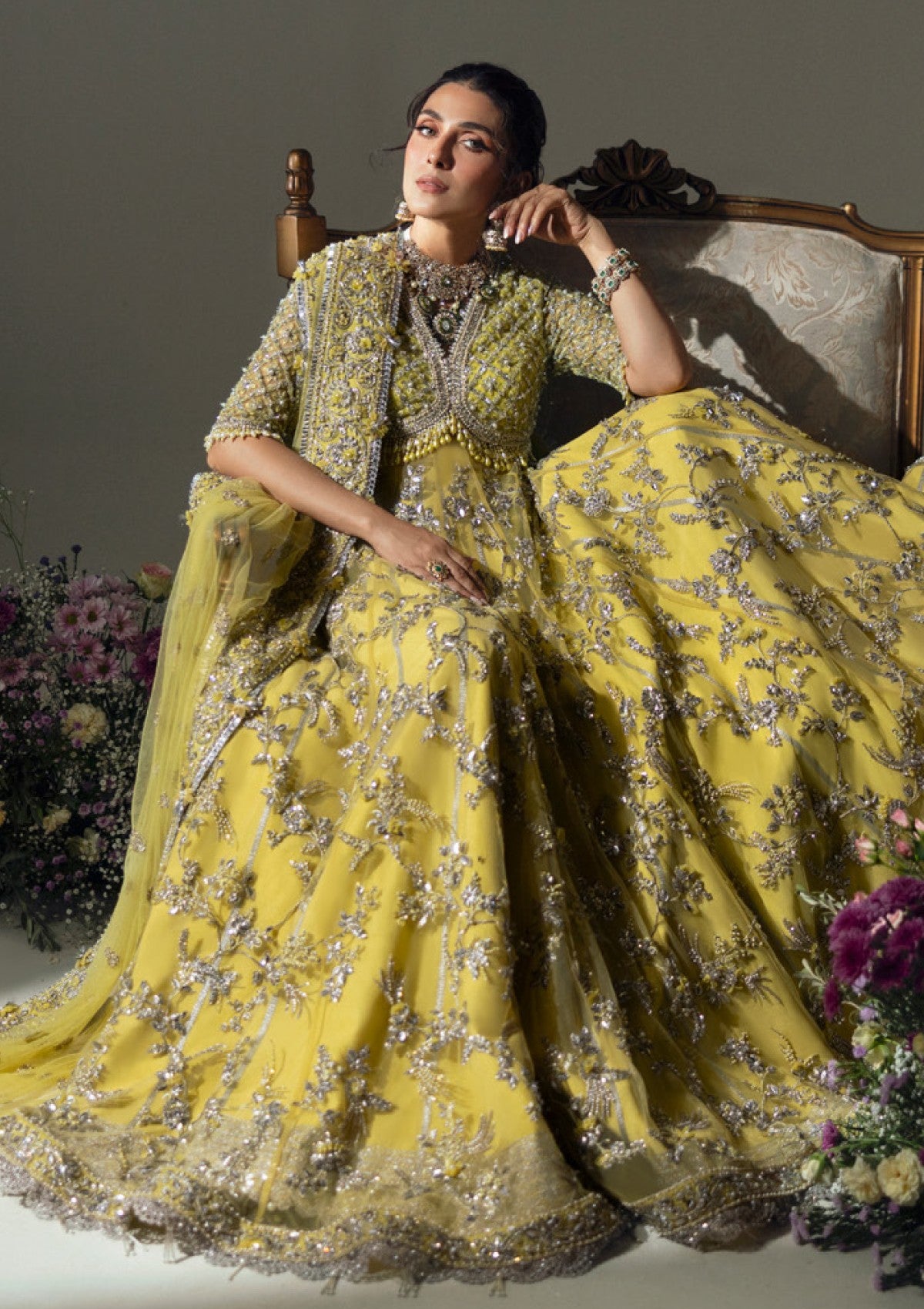 ‘Lime Blossom’ is not merely an outfit; it is a radiant dream destined to illuminate the heart of every festivity, leaving an unforgettable aura of celestial elegance and charm.