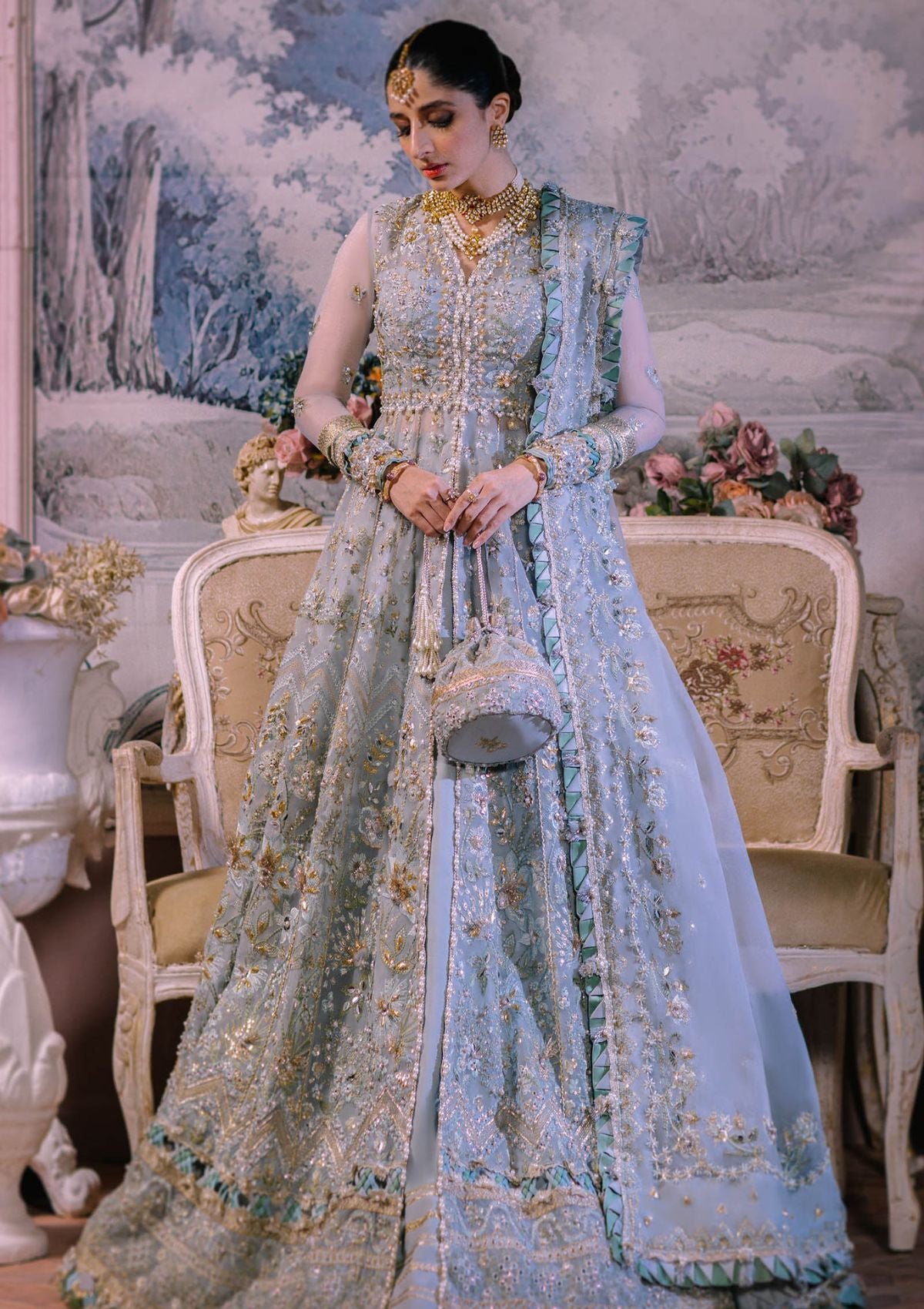 Embellished+Embroidered Front border (Organza) 2 Meters