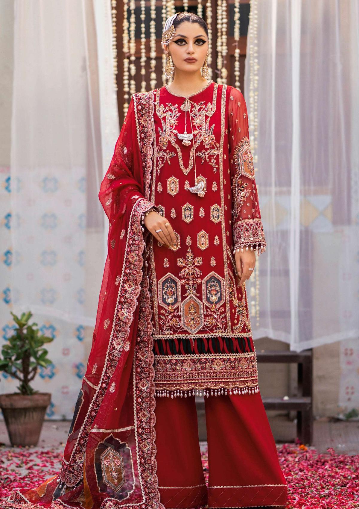 Front Panel with hand Embellishment on Pure Bamber Front Kali Embroidered with hand embellishment on Pure Bamber (L+R) Embroidered back on Pure Bamber (1Mtr) Embroidered sleeves with hand Embellishment on Pure Bamber (1Mtr) Embroidered sleeves border with Hand Embellishment on Organza (1Mtr) Embroidered front border with hand Embellishment on Organza (33 Inches) Embroidered back daman on Organza (33 Inches) Embroidered dupatta with 2 sides border on Pure Bamber with Embroidered Pallu Organza Laser cutting Design (2.5Mtr) Raw Silk Trouser (2.5Yards)