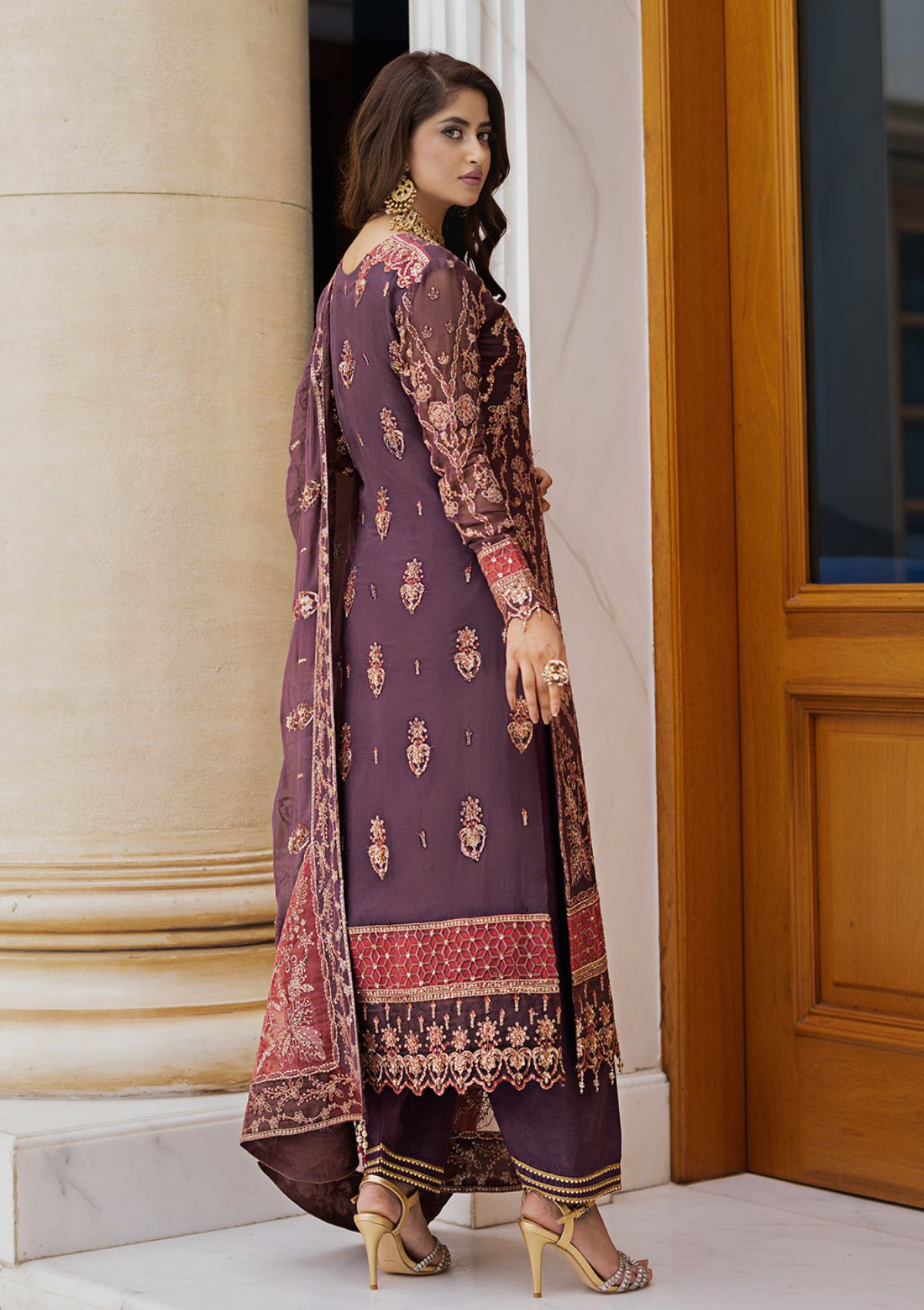 Organza Embroidered dupatta borders.
