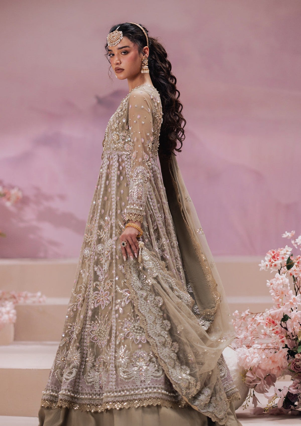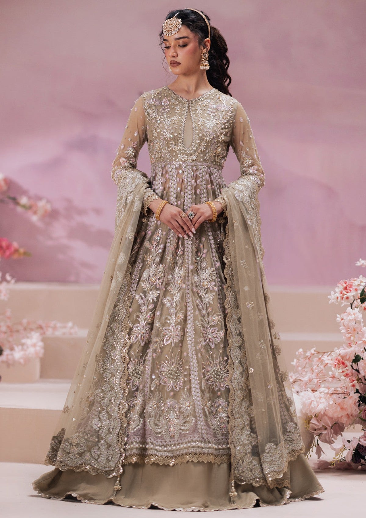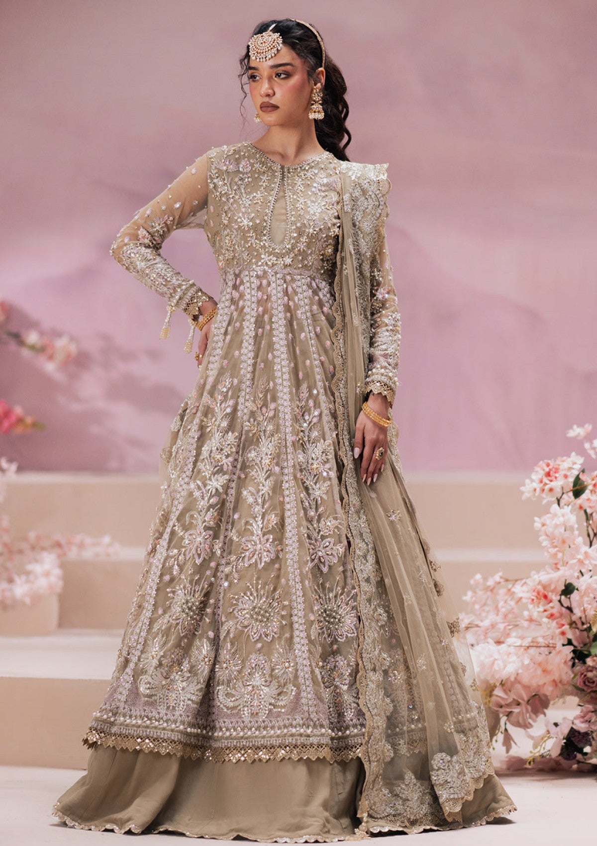 • Embroidered net sleeves hand embellished  (26 inch))