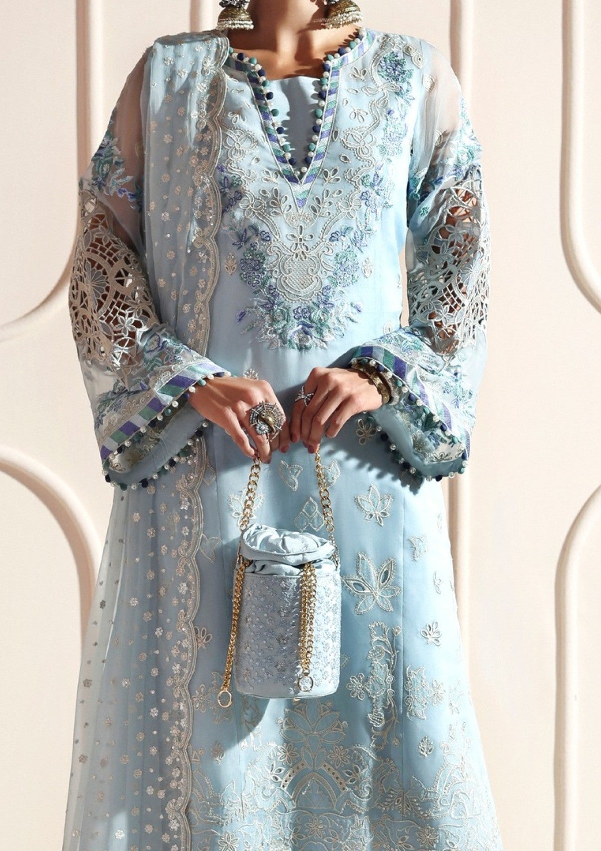 • Embroidered Sleeves Motif (Organza)