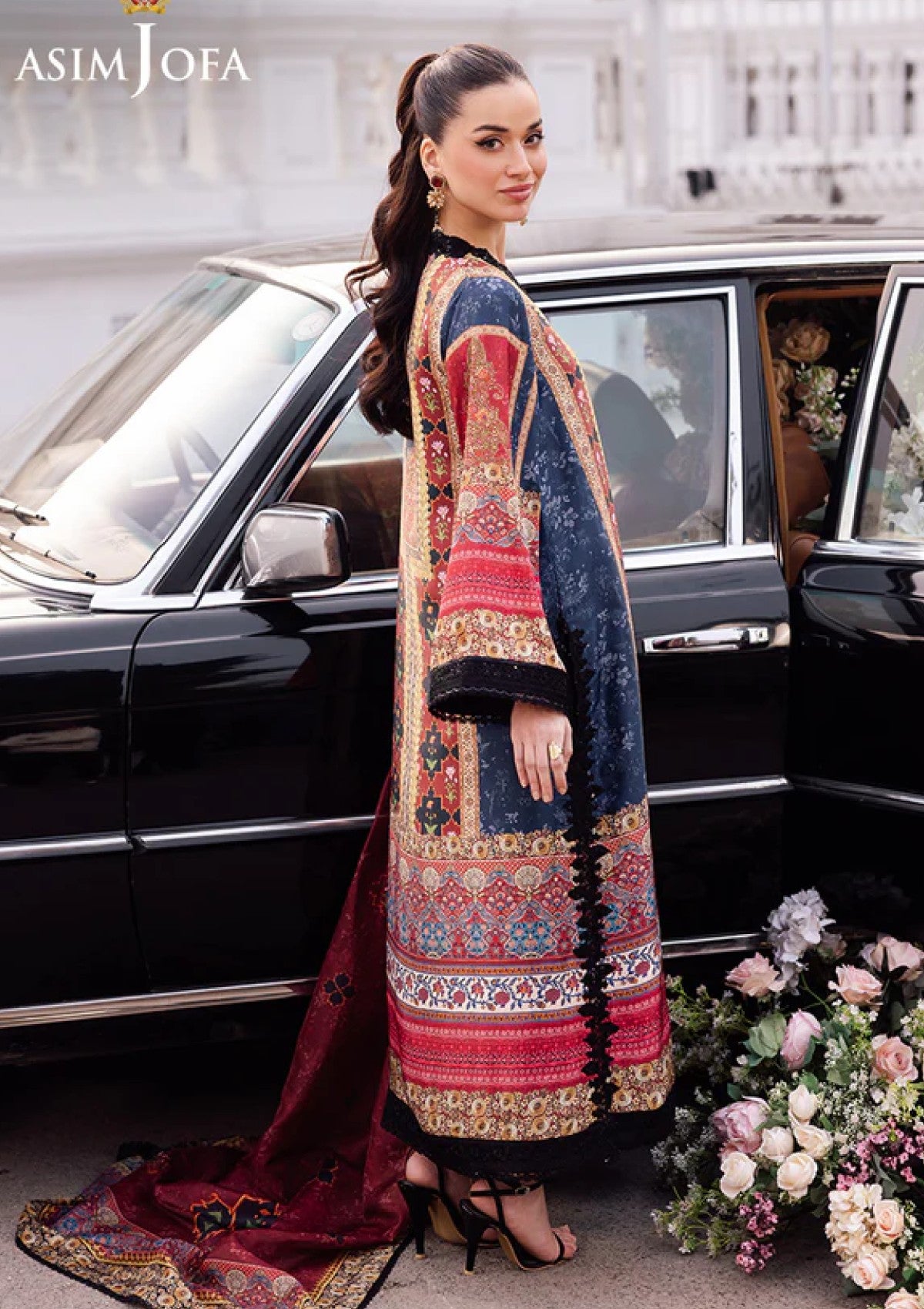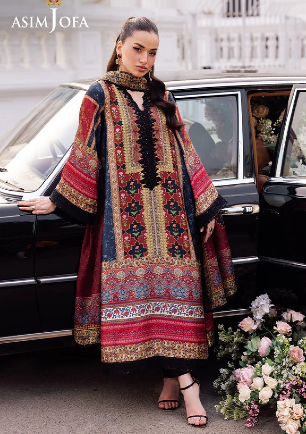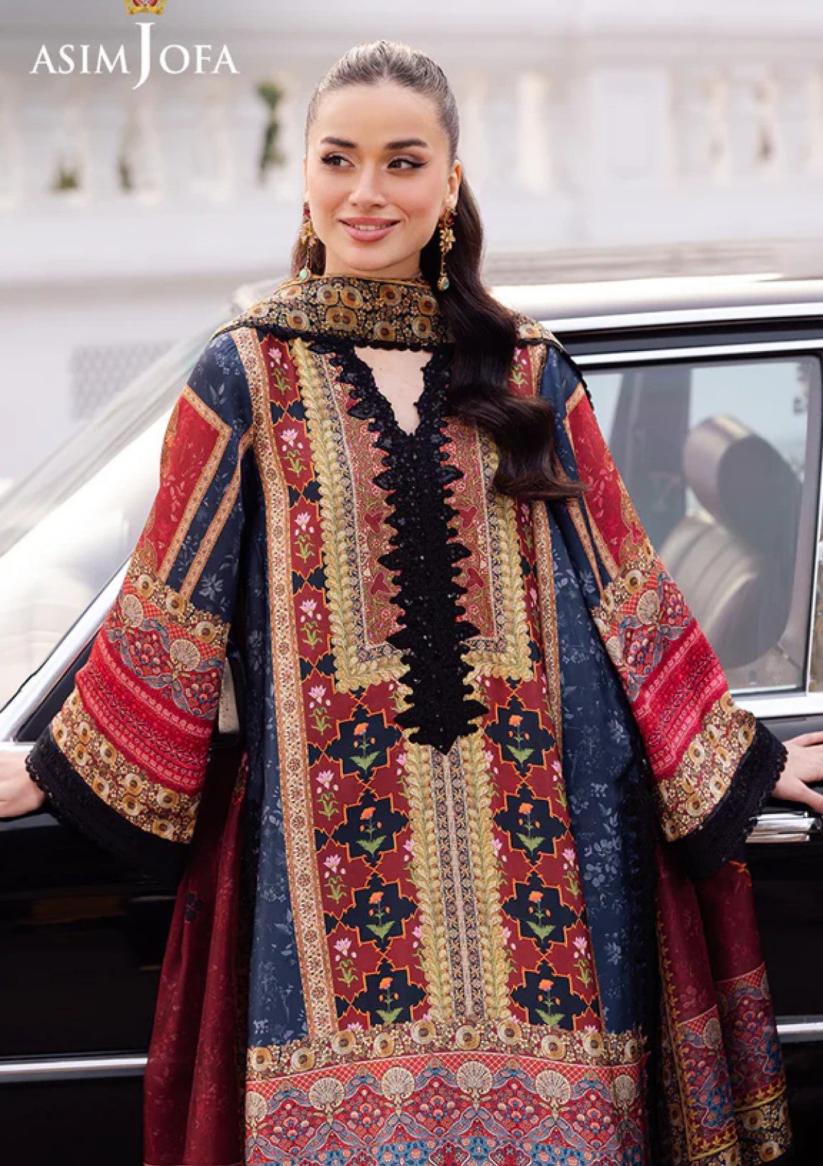 Bold and captivating, this black outfit is a canvas of uniqueness with its bohemian inspired print. The digitally printed shirt features beautifully embroidered neckline adding a touch of elegance, while the detailed embroidery on the sleeves and borders enhances its luxurious appeal. Paired with a digitally printed silk dupatta that drapes like a shadow of refined grace, this outfit is a flawless blend of dramatic charm and versatile style for both formal and casual events.