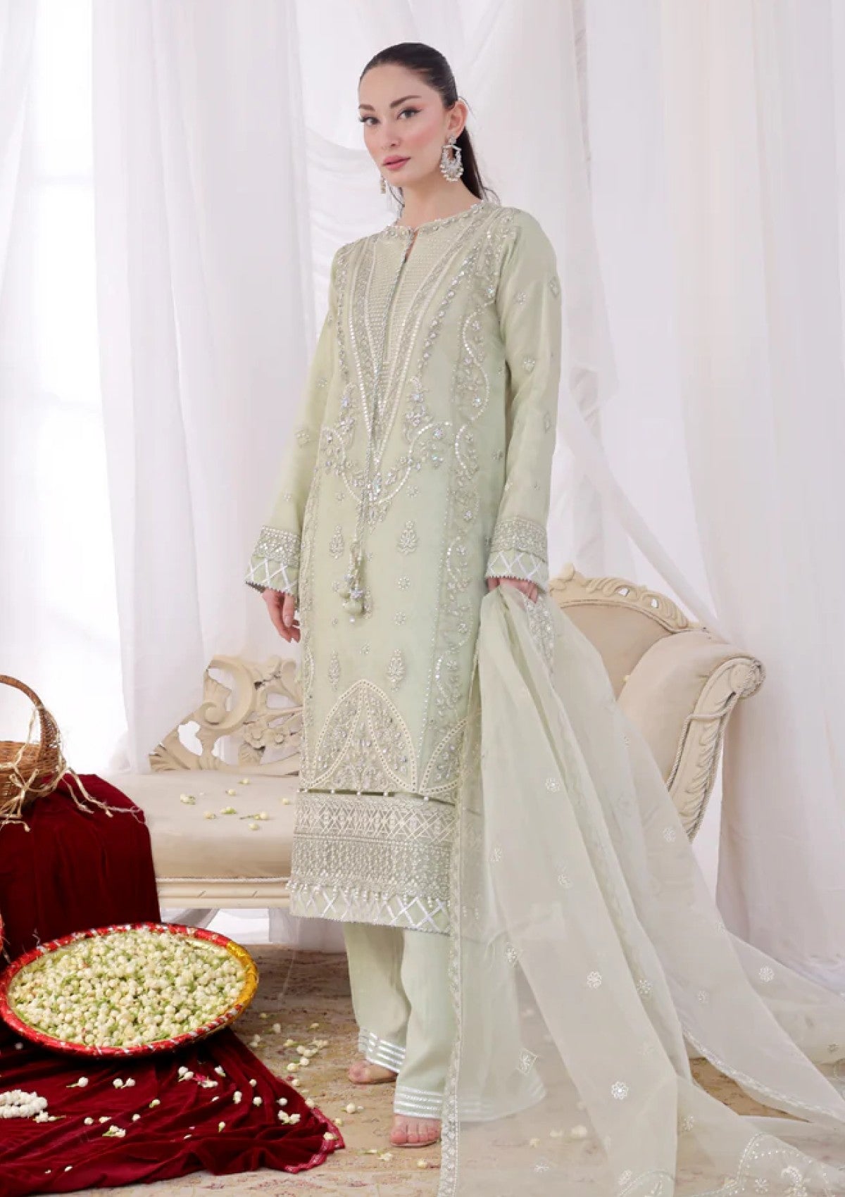 • Shirt: Unstitched luxury embroidered Shesha Silk Organza adorned with exquisite hand embellishments for a regal touch.