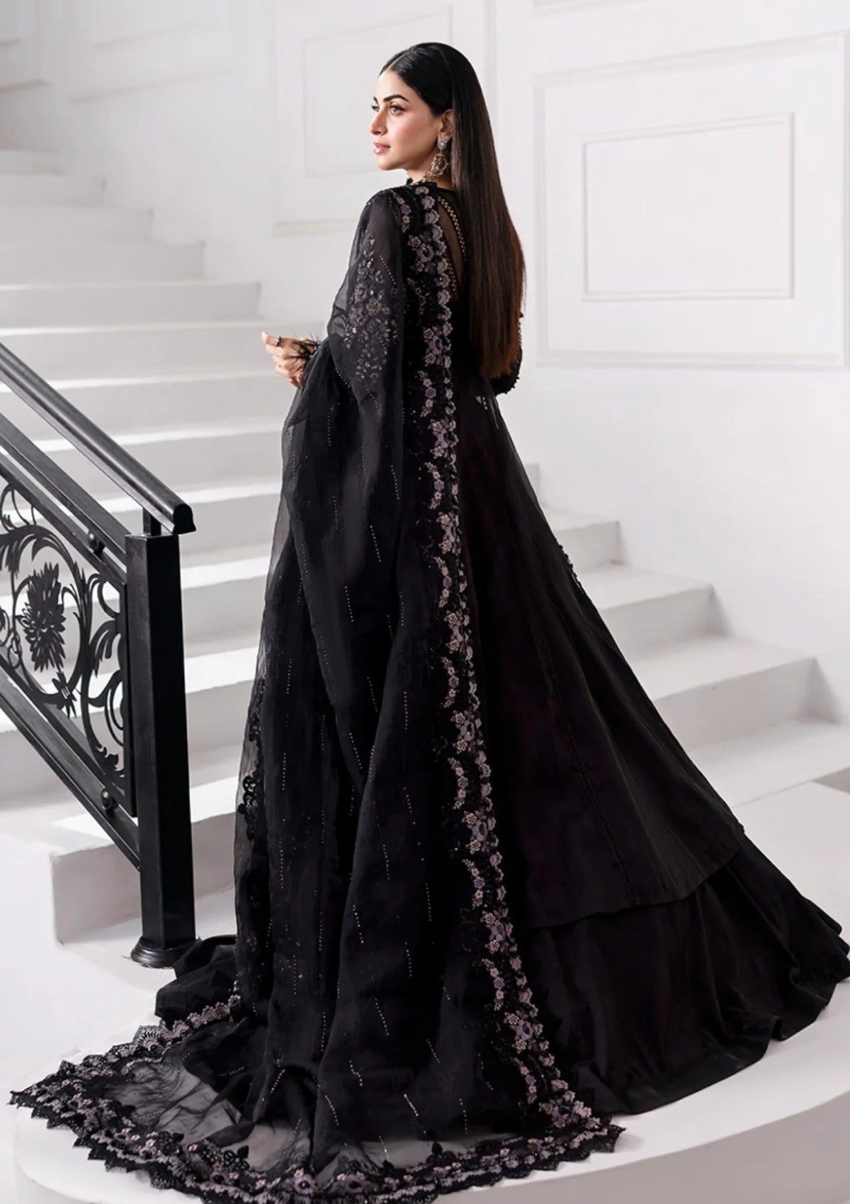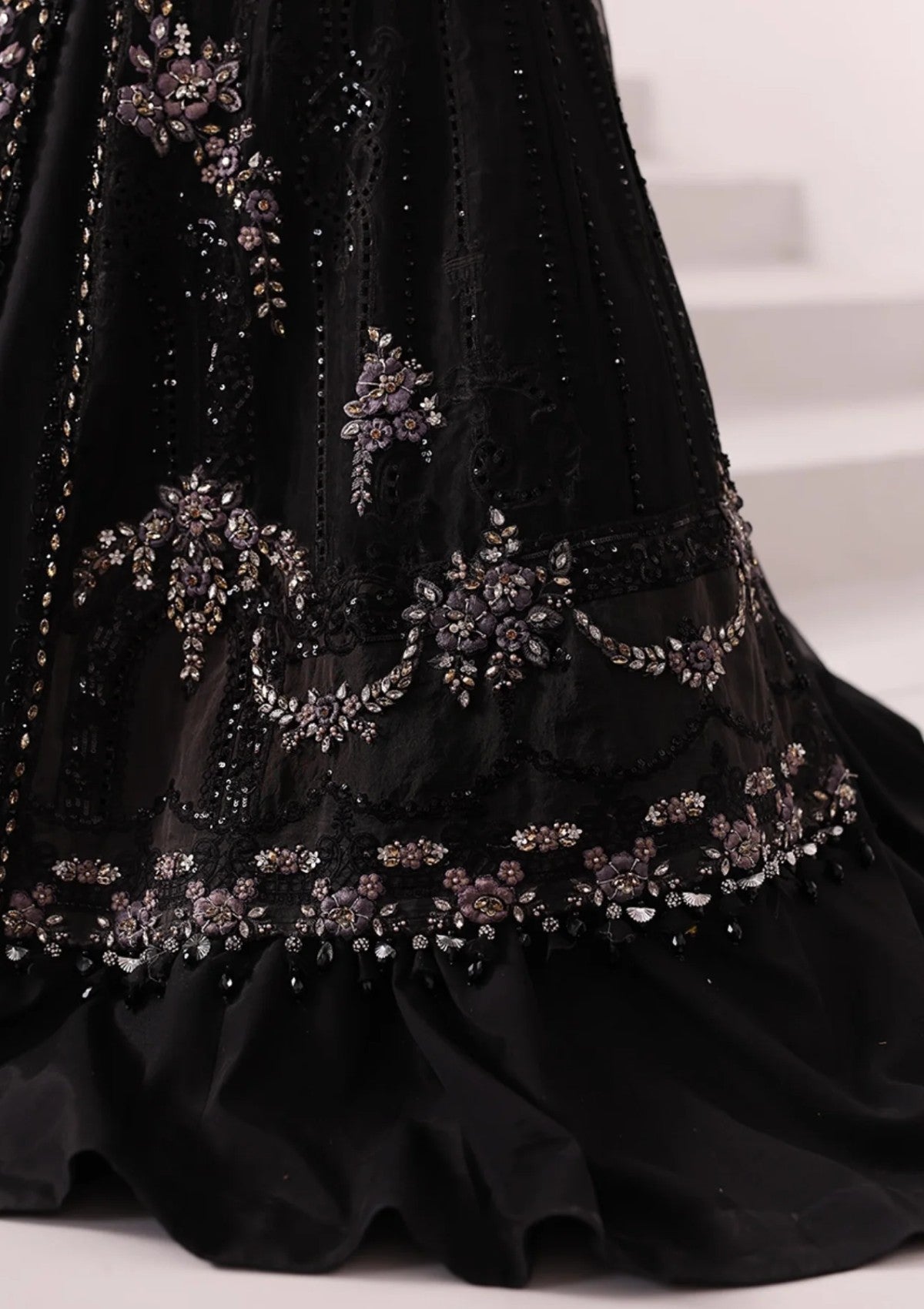 Embroidered Organza Ghera Patti With 3D Flowers & Luxury Hand Embellishment