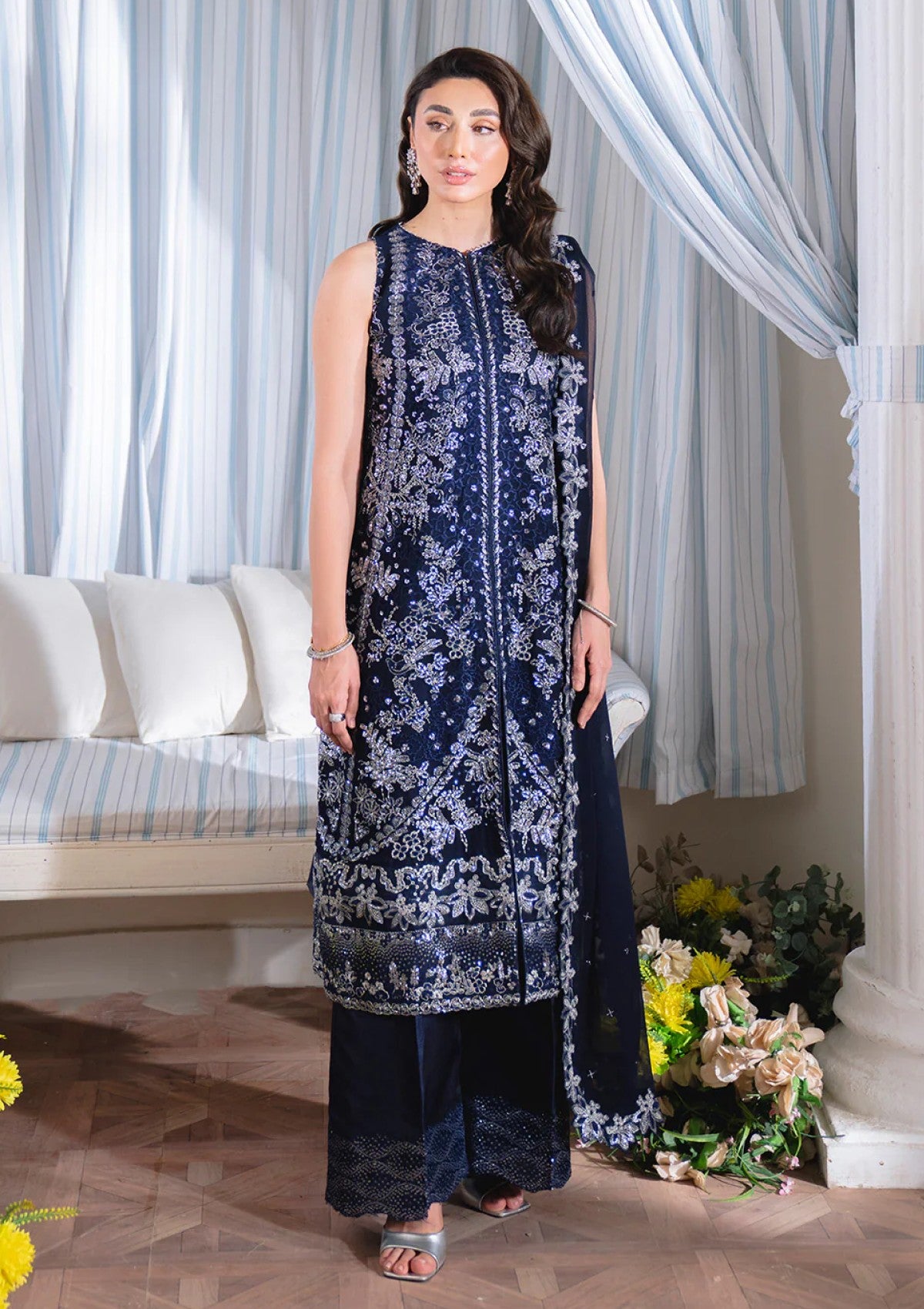 • Embroidered chiffon dupatta (2.5-meter).