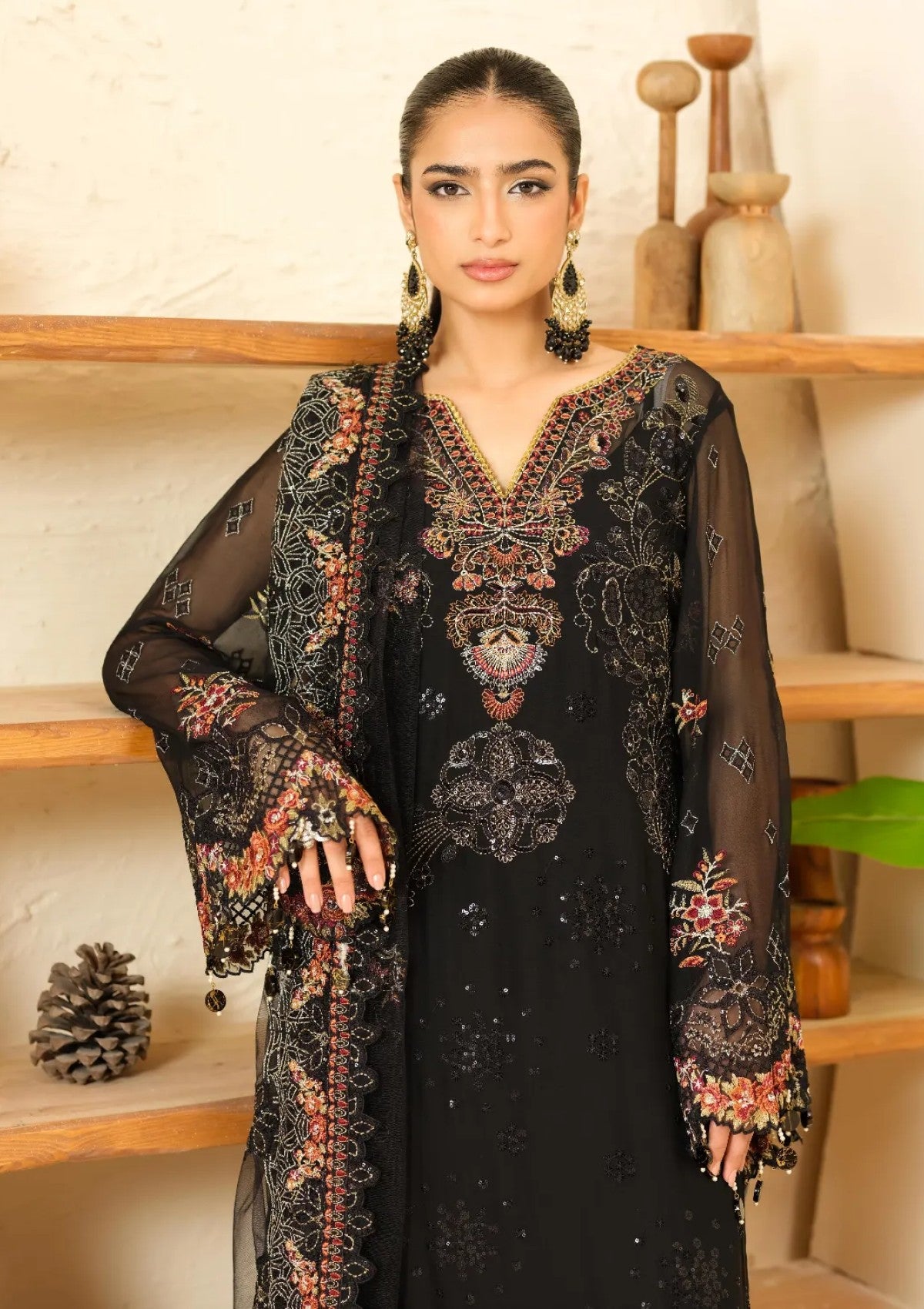 •  EMBROIDERED CHIFFON FRONT 1-PC