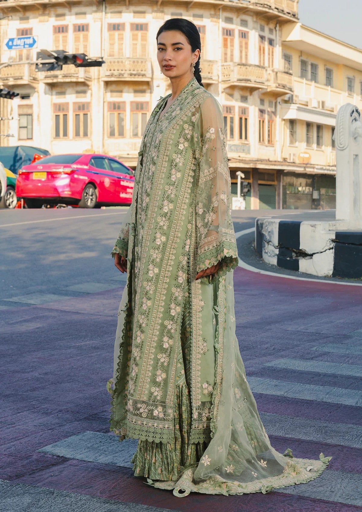 In a regal emerald green fabric, this ensemble radiates richness and tradition, its tones echoing both love and promise. The long tunic is adorned with intricate embroidery and embellishments, weaving floral and geometric motifs across the neckline, sleeves, and hemline, shimmering softly with artisanal detail. The trousers, tailored in the same deep green shade, provide balance and structure, their simplicity allowing the ornate tunic to remain the centerpiece. Draped gracefully over the ensemble, the matching dupatta carries complementary embroidery, its delicate threadwork and embellishments echoing the tunic’s artistry, completing the look with refinement and poise. Together, the ensemble forms a harmonious composition: the expressive heart, the grounding foundation, and the tender veil that unites them.