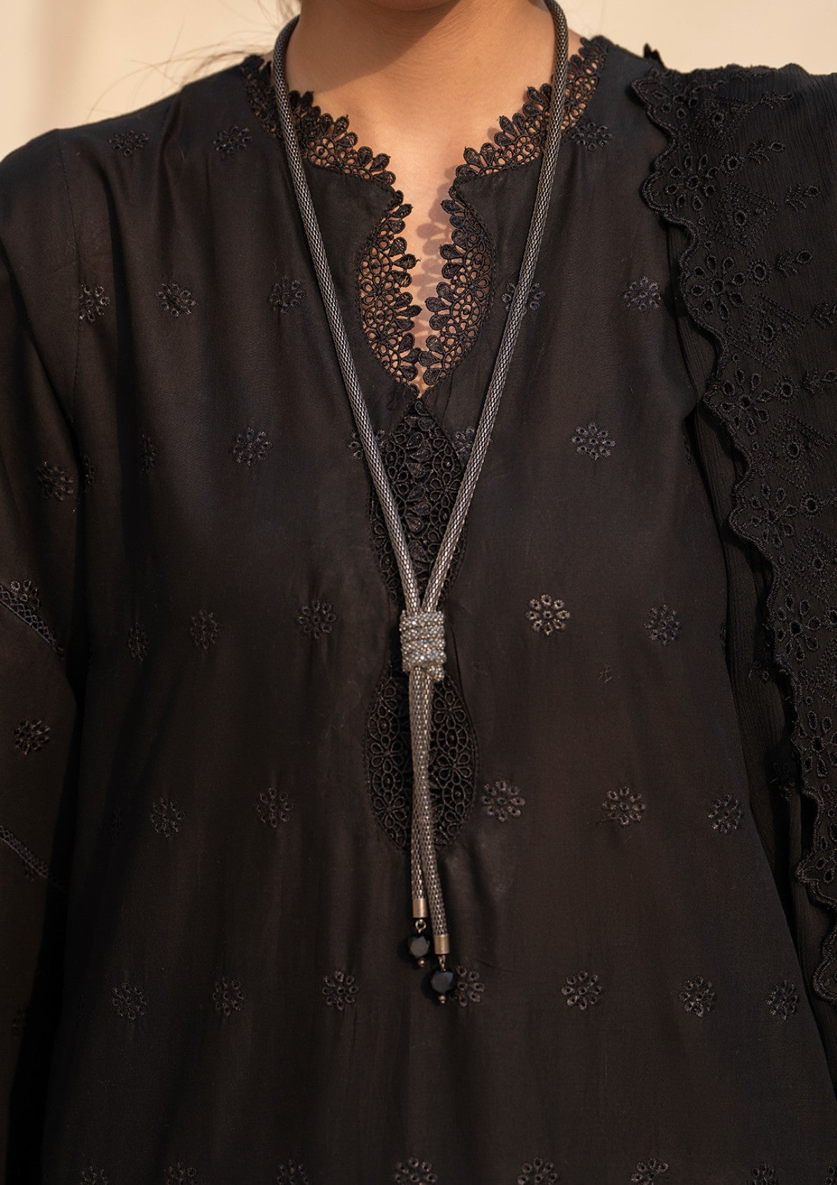 Dyed Lawn front, Sleeves &- Back schiffli Embroidered