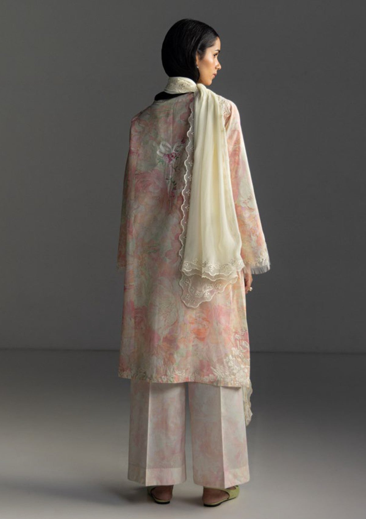 and finished with a meadow mist dupatta for a soft, serene