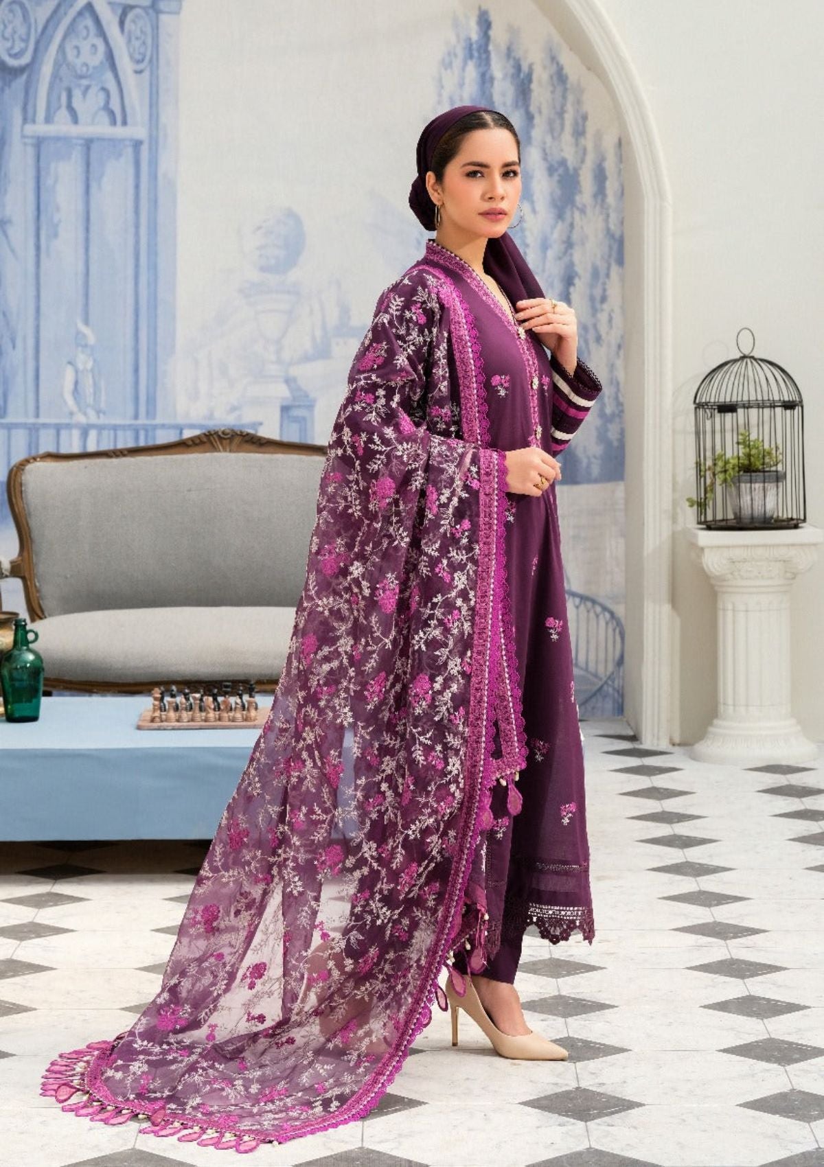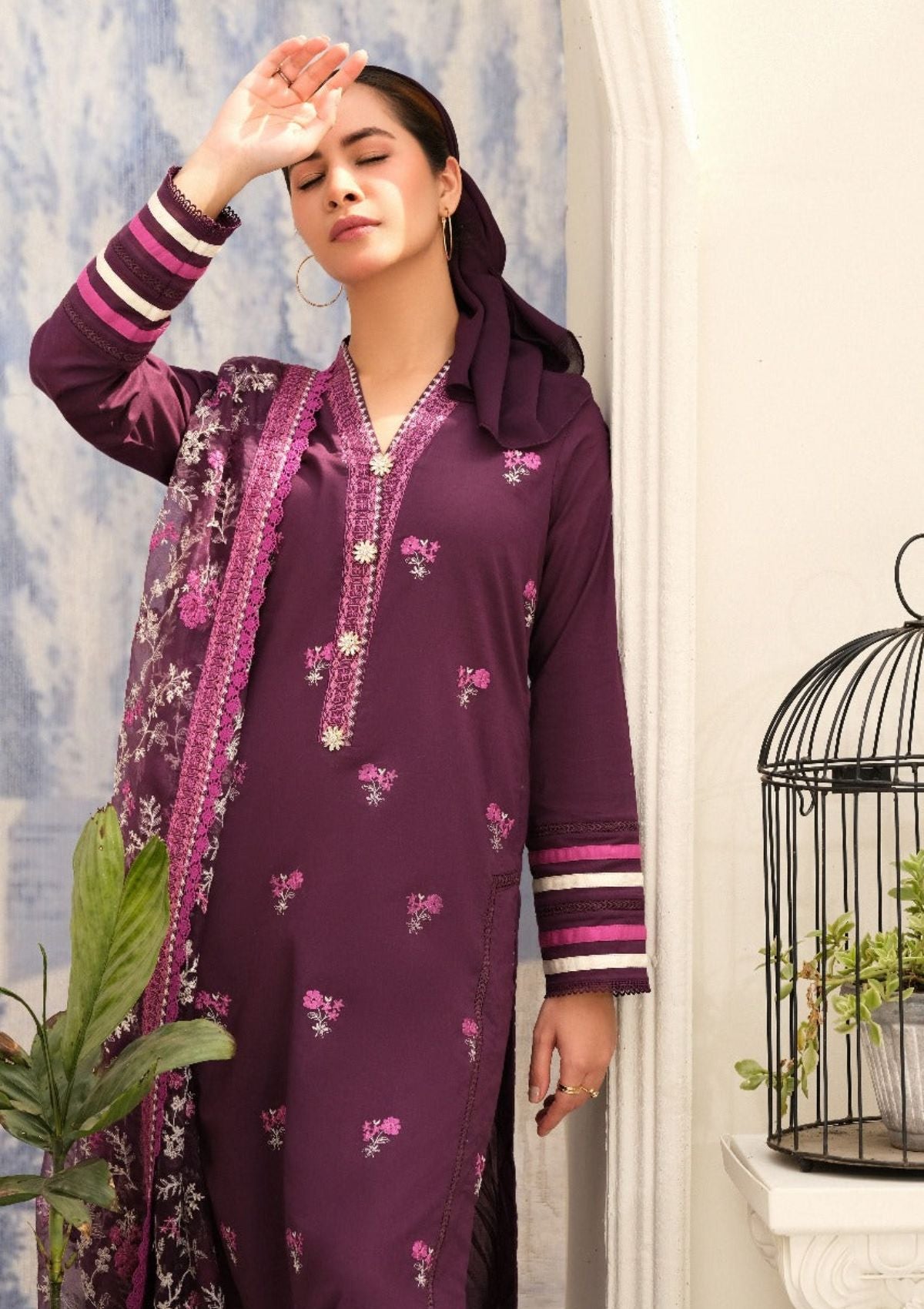 Discover elegance in our Purple Three-Piece Suit, where the embroidered front steals the spotlight, while the back remains gracefully plain. The ensemble is beautifully complemented by an embroidered organza dupatta, adding a touch of sophistication. Step into subtle charm with this outfit, perfect for making a stylish impression. Color: Purple Discover elegance in our Purple Three-Piece Suit, where the embroidered front steals the spotlight, while the back remains gracefully plain. The ensemble is beautifully complemented by an embroidered organza dupatta, adding a touch of sophistication. Step into subtle charm with this outfit, perfect for making a stylish impression