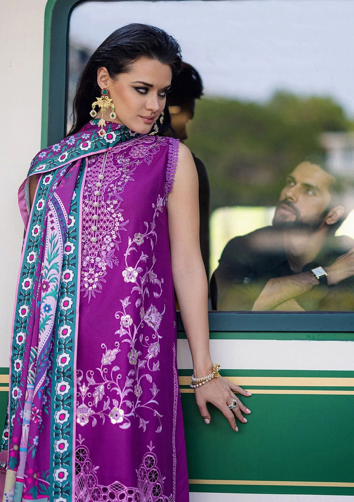Embroidered & sequinned lawn back &sleeves
