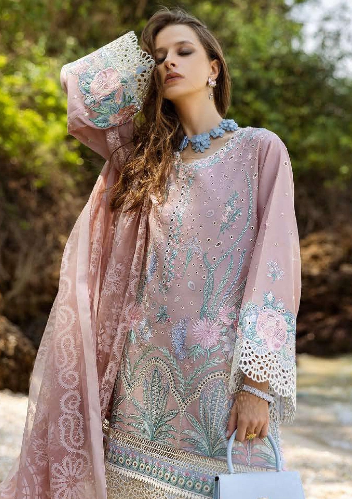 • Embroidered sleeves border (organza)