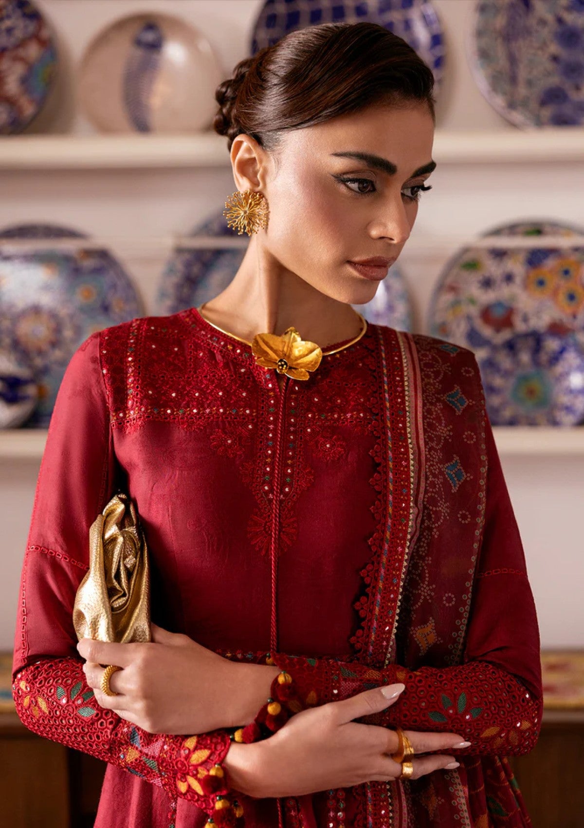 Elevate your collection with this distinguished luxury lawn ensemble, where premium jacquard fabric meets masterful embroidery throughout. The embroidered jacquard body showcases comprehensive needlework, complemented by intricately embroidered sleeves and detailed front and back panels that create a cohesive artistic vision. Refined embroidered organza sleeve borders add delicate sophistication, while the dyed jacquard back body provides elegant textural contrast. A digital printed tissue silk dupatta with embroidered organza borders offers versatile styling options, enhanced by a digital printed cambric bottom that ties the ensemble together. This three-piece collection represents the pinnacle of contemporary craftsmanship, ideal for those who demand excellence in every detail.