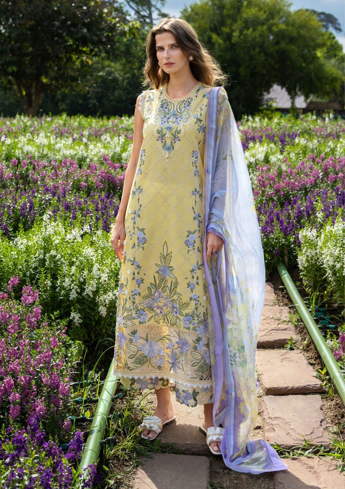 • Chikan embroidered lawn front