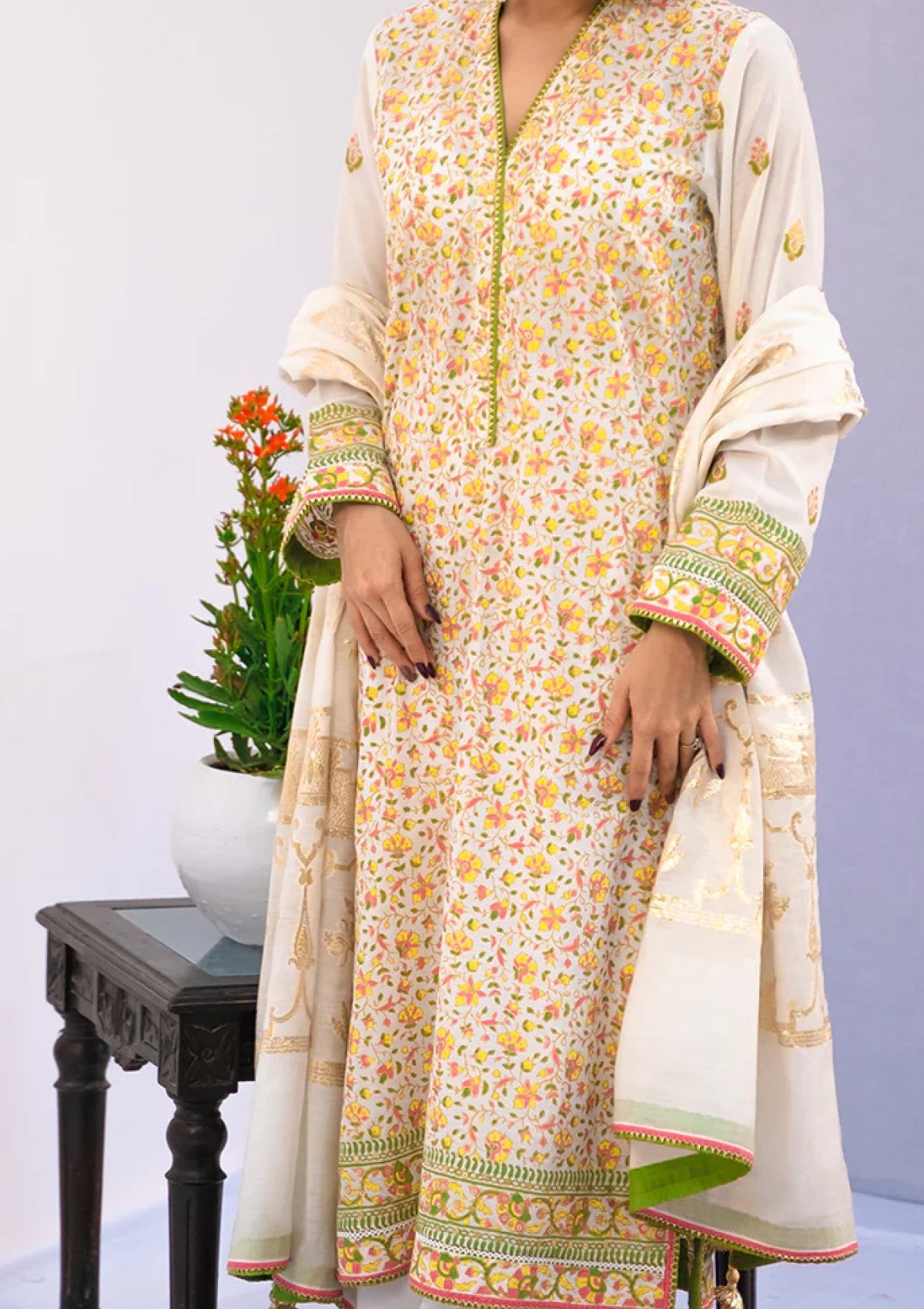 HAND BLOCK PRINTED SILK LAWN SHIRT 2.5M