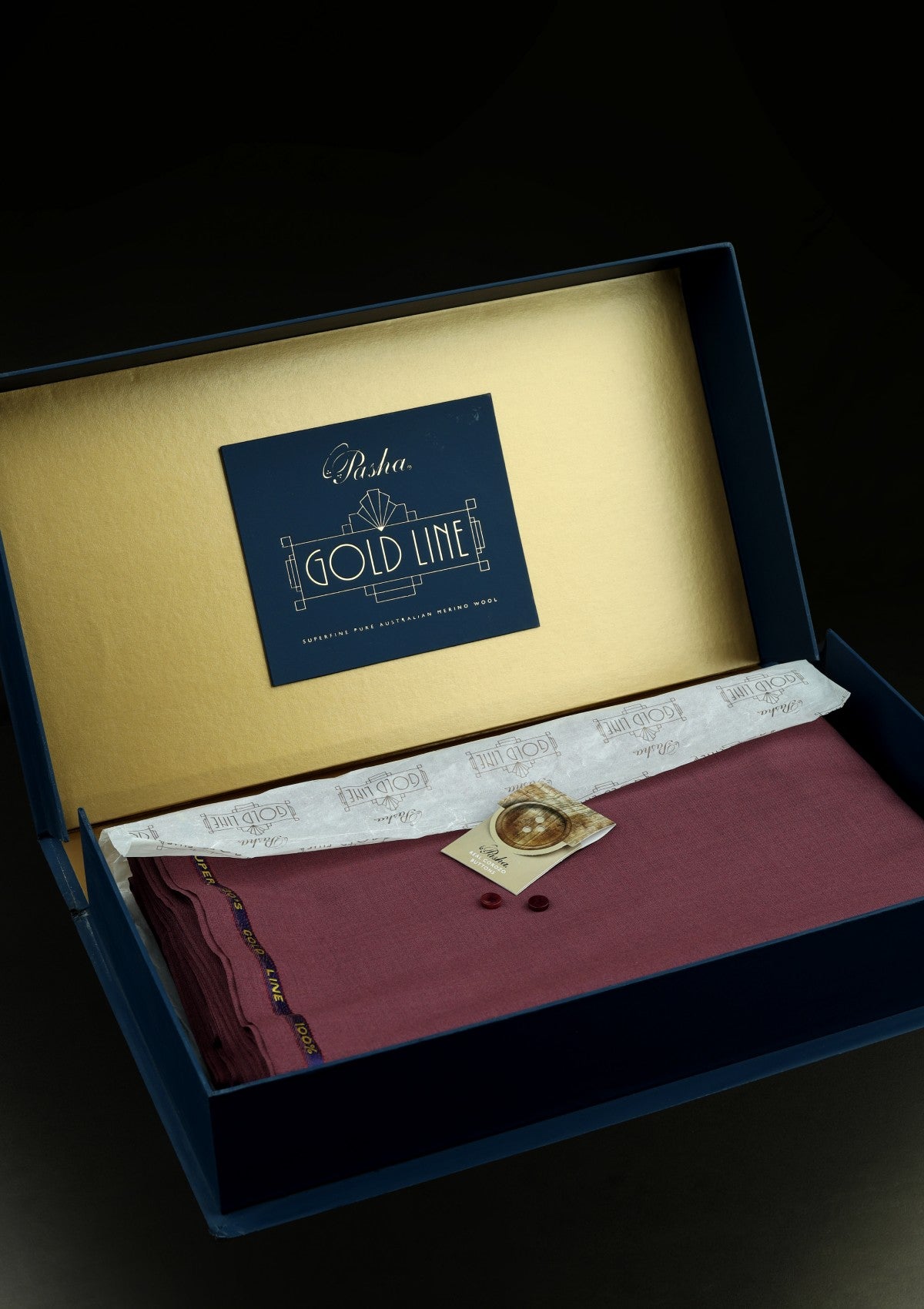 Gold Line – Merino Wool caters to gentlemen with a discerning taste for elegance and prestige. It is a super 130s, 190 gsm, double yarn fabric made from superfine 17.5 micron Pure Australian Merino Wool. Its sophisticated range of colours offers a selection beyond that of ordinary suit pieces. Its dark hues, soft touch, and outstanding fall make it the ideal fabric for formal and evening winter wear and also as a high-end gift.