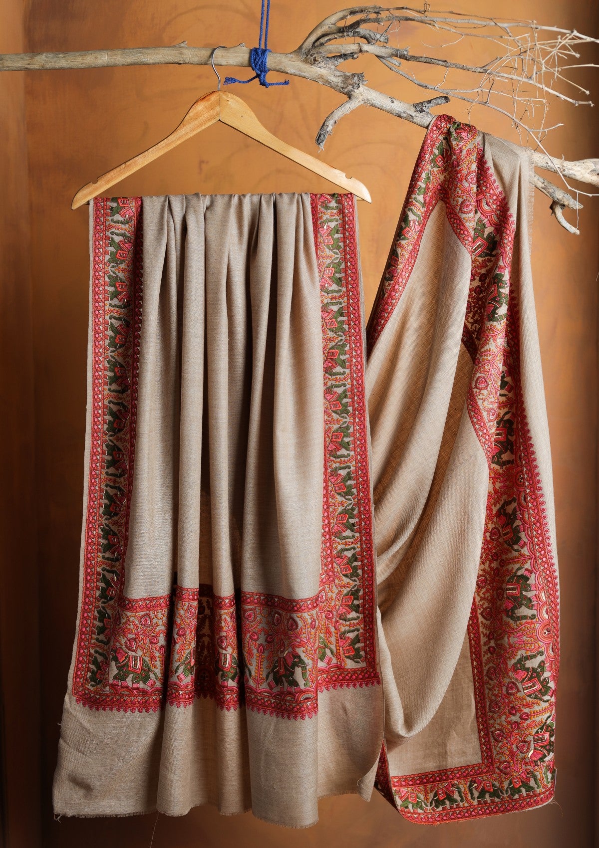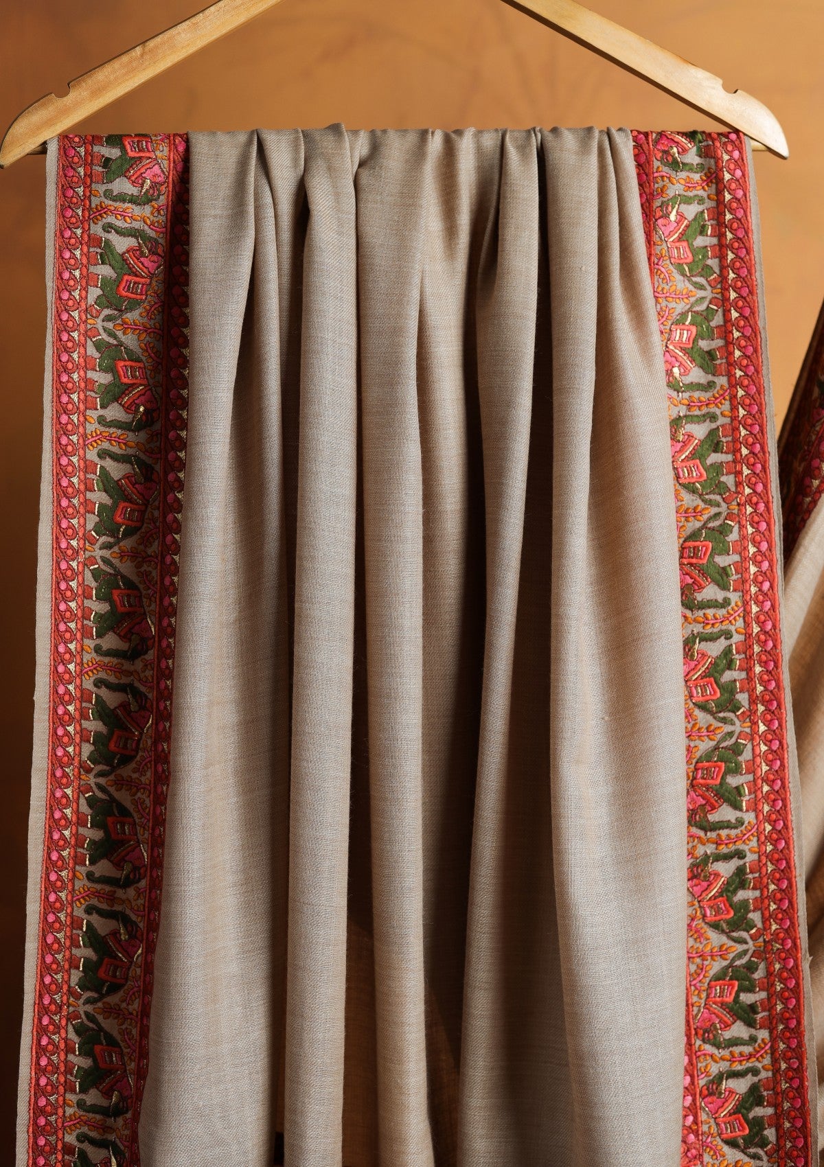 Pashmina Embroidered Border Shawl D#202 - Skin