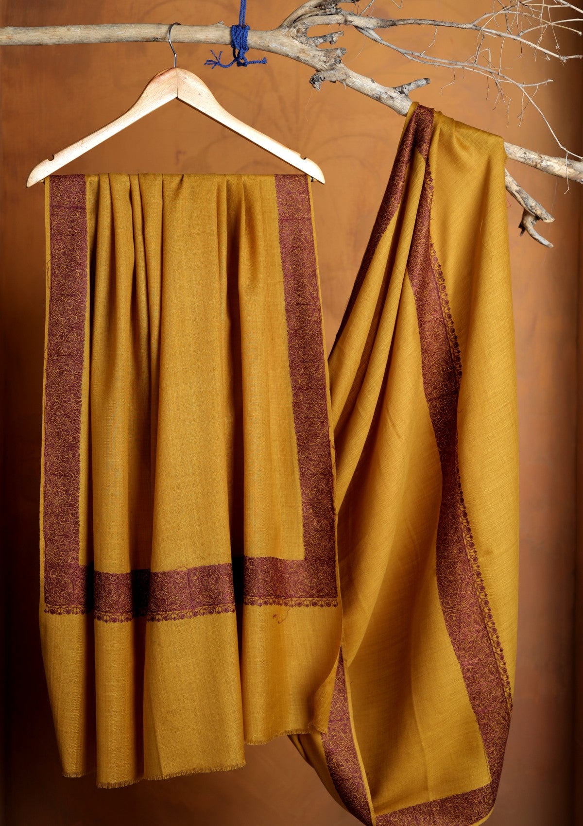 Pashmina Embroidered Border Shawl D#205 - Golden