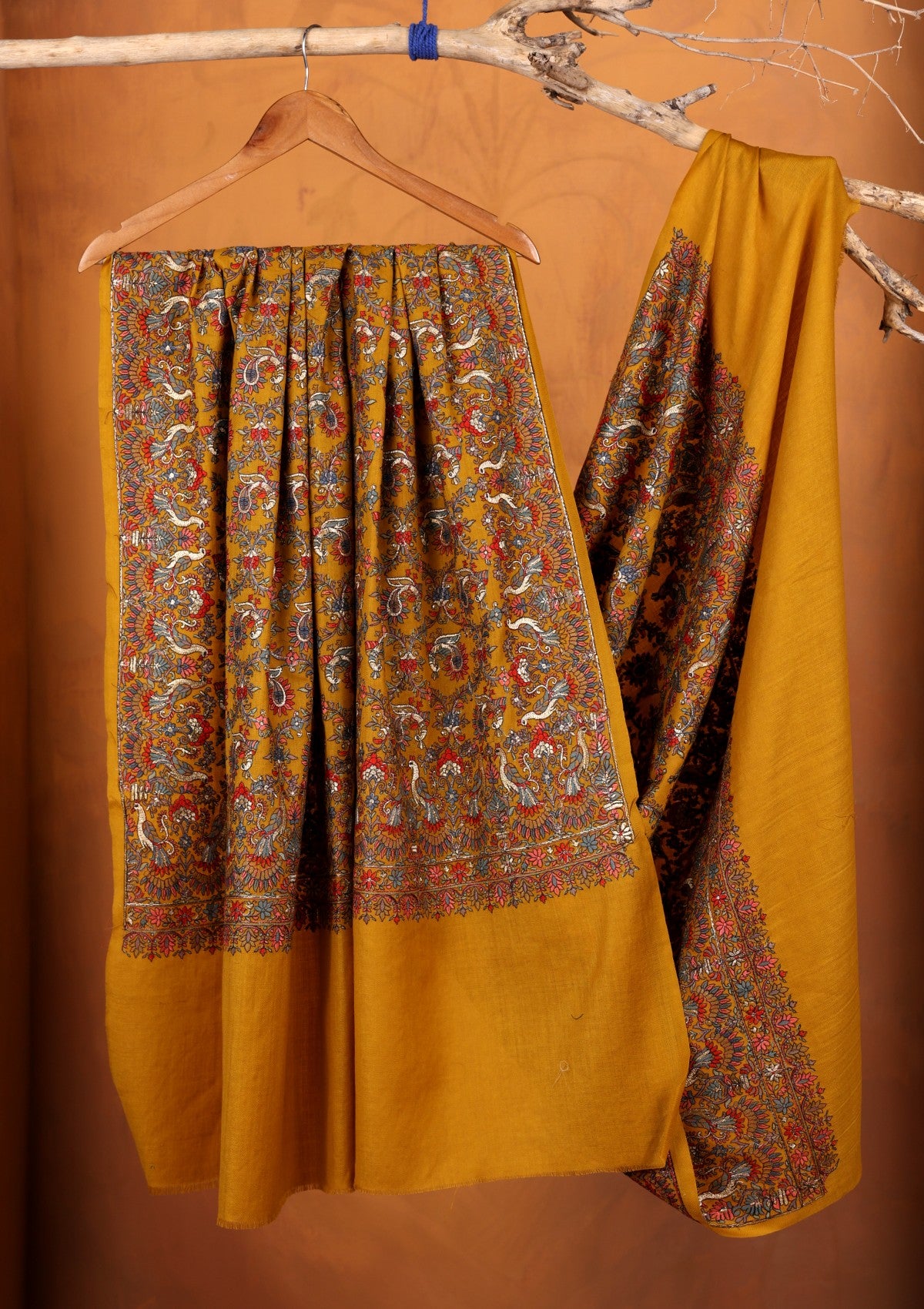 Pashmina Embroidered Jaaldar Shawl D#03 - Mustard