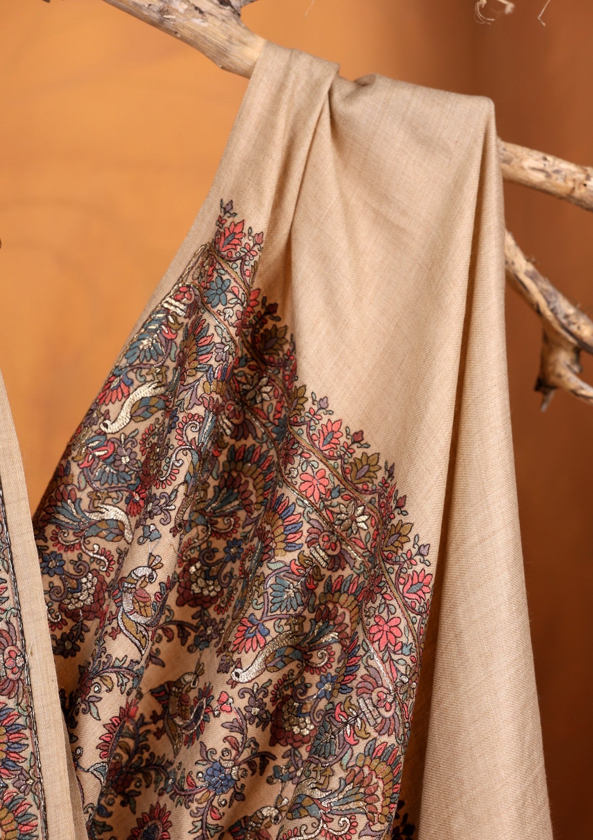 Pashmina Embroidered Jaaldar Shawl D#03 - Skin