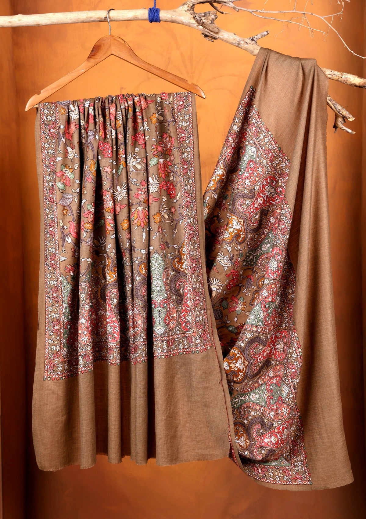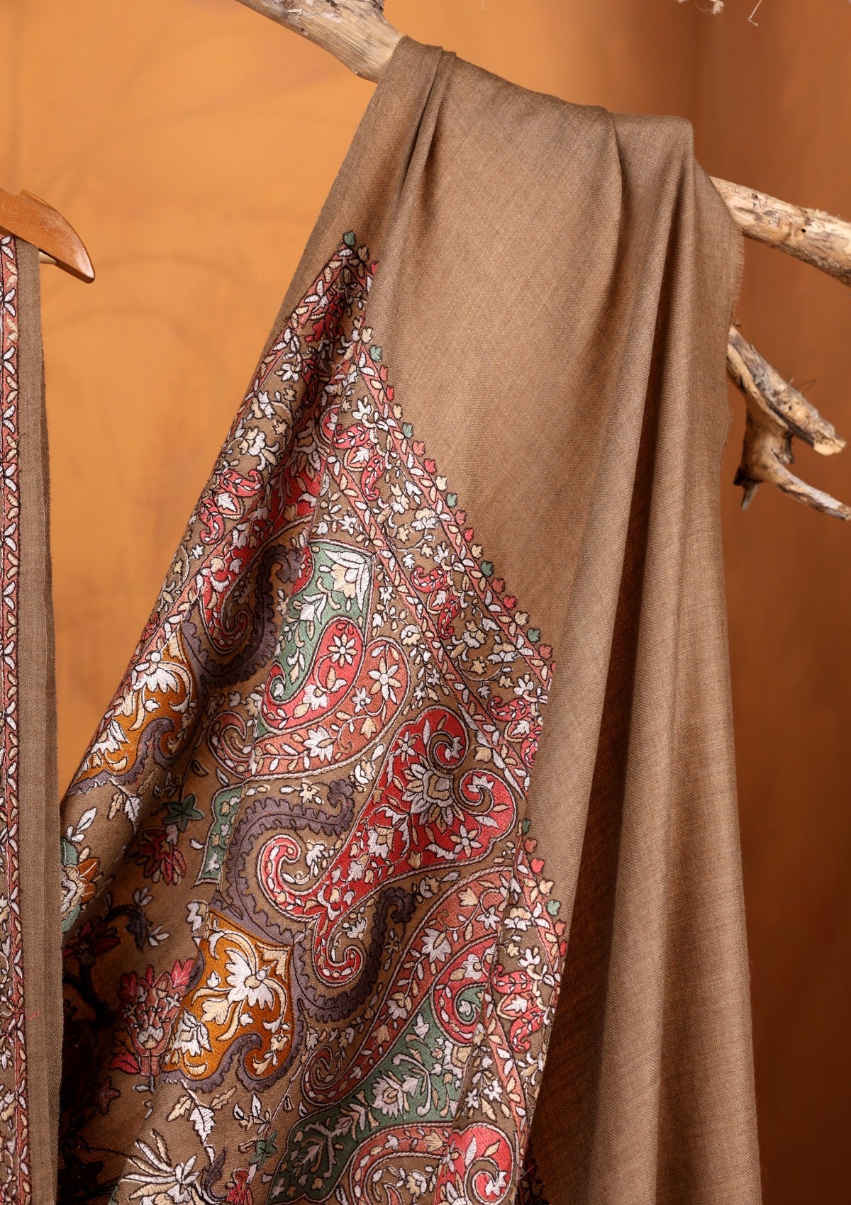 Pashmina Embroidered Jaaldar Shawl D#05 - Brown